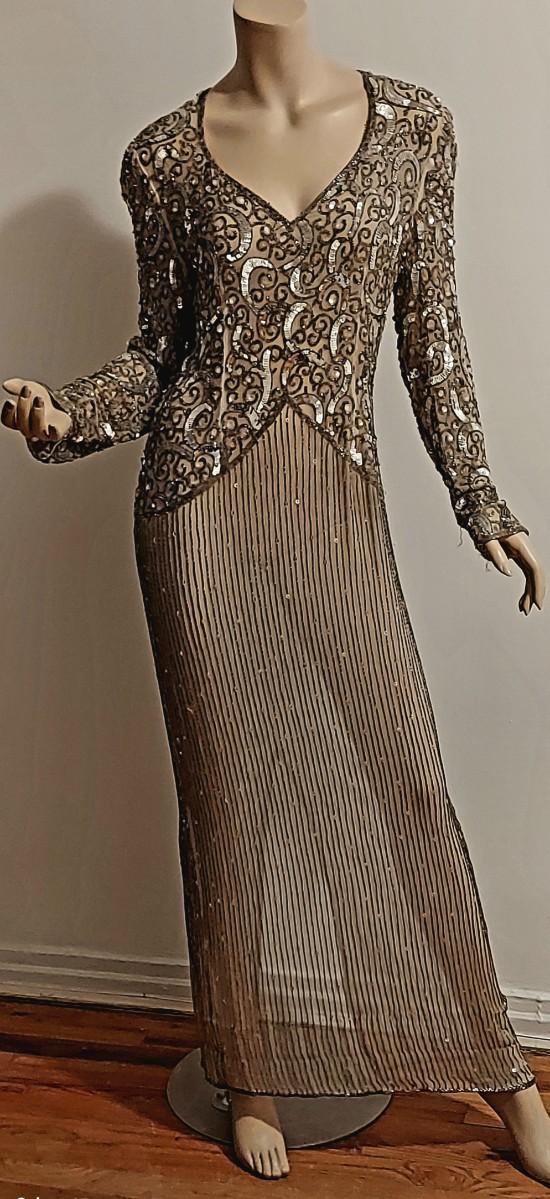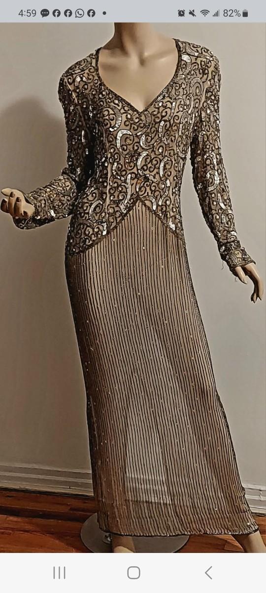 This one is a Stunner from the Late 80s. Layering Maxi fully Hand Beaded and Sequined. In Amazing Vtg condition.