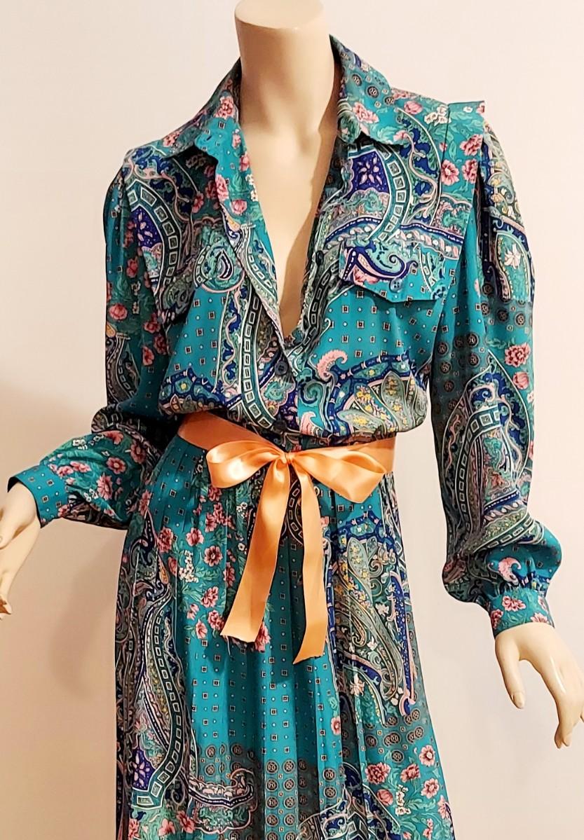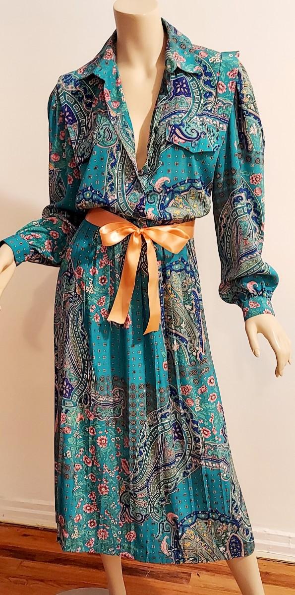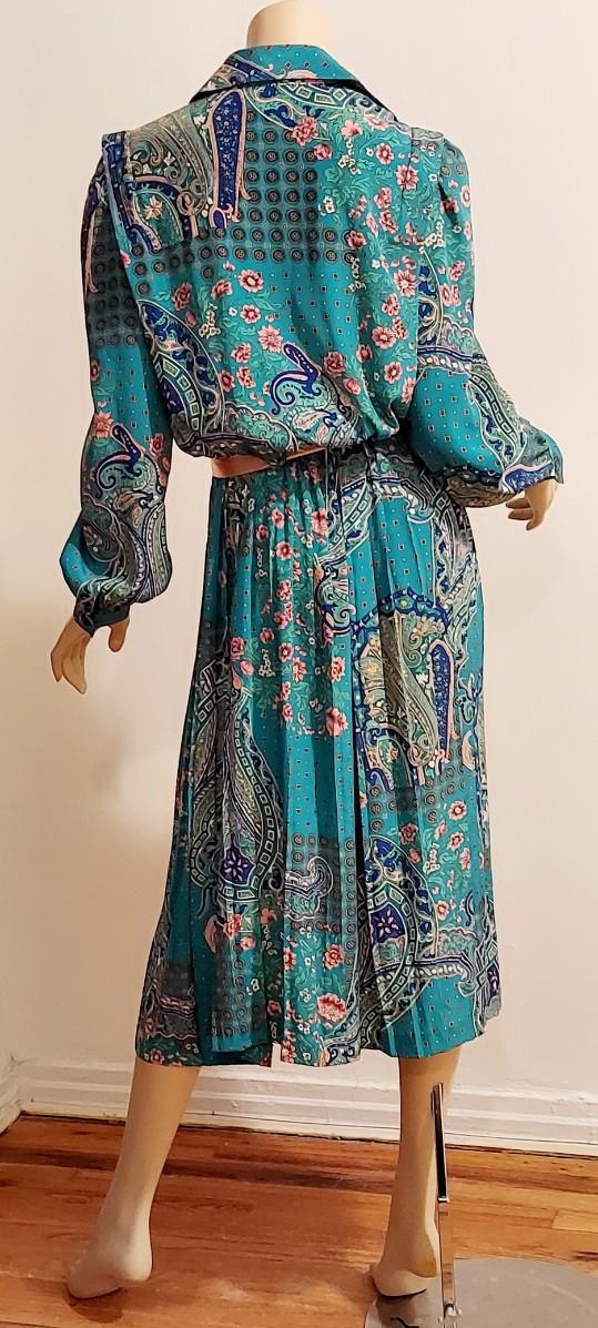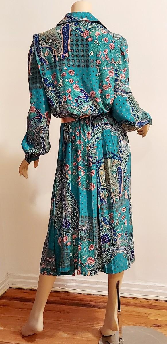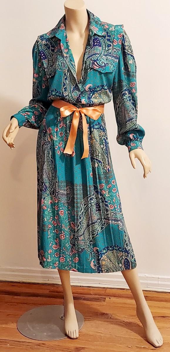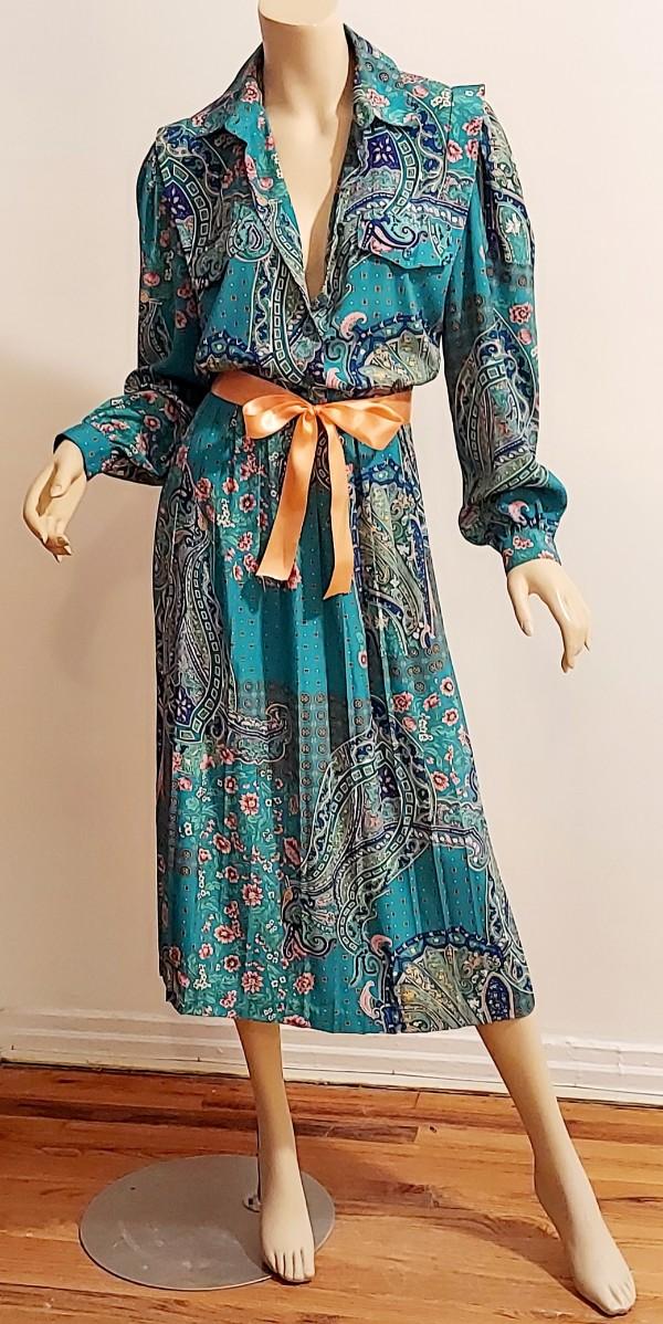 This one is a Beautiful day dress by famous Leslie Fay with a Stunning printed Design pleated and detailed Especially the skirt .Really Classic