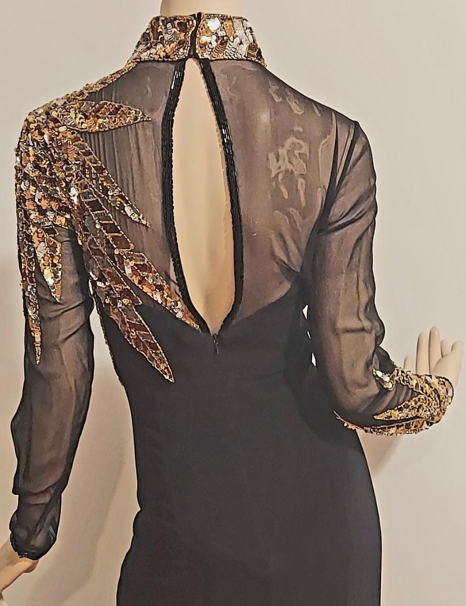 Vtg 1980s Oleg Cassini Crepe Maxi Gown with Gold Sequins Embellished Illusion Bodice. Oval back opening and back Zipper. This Stunning Festive Glamorous Gown is Drop Dead Gorgeous and in Amazing Vtg Condition almost like new.