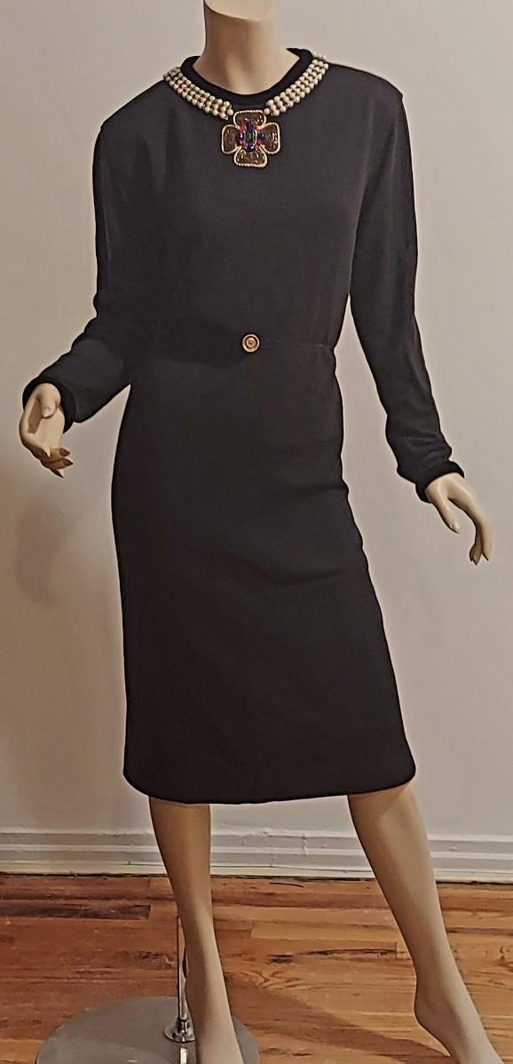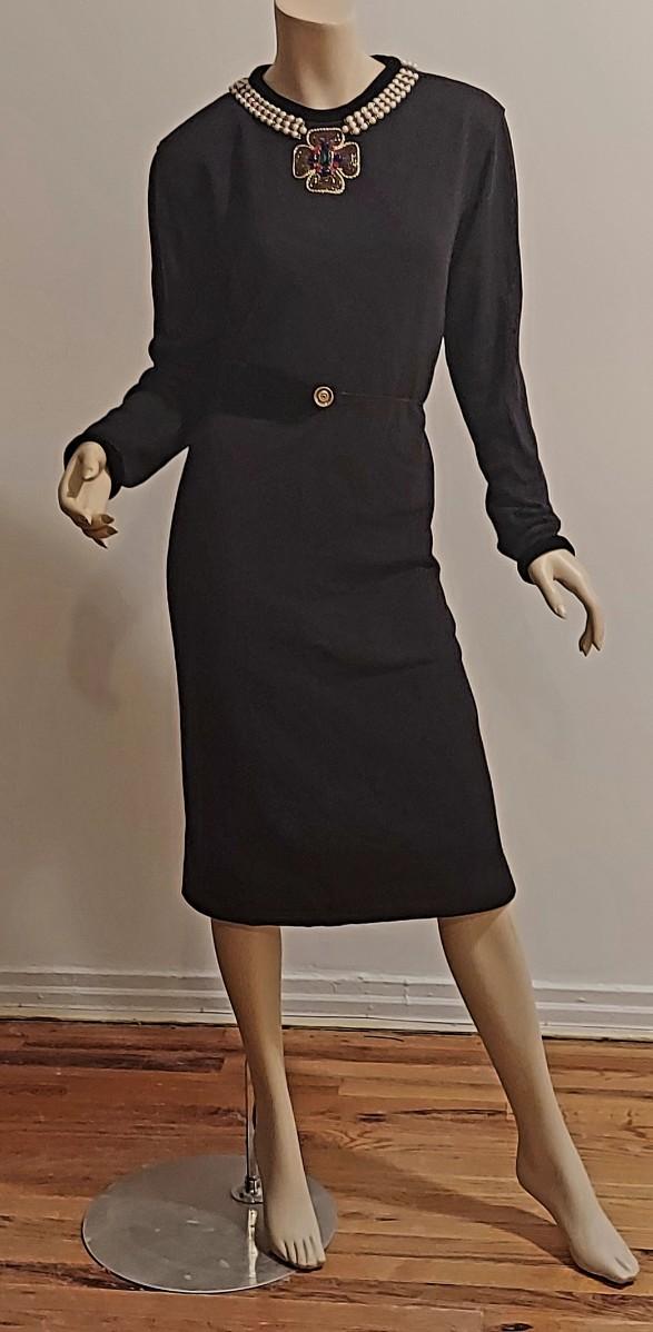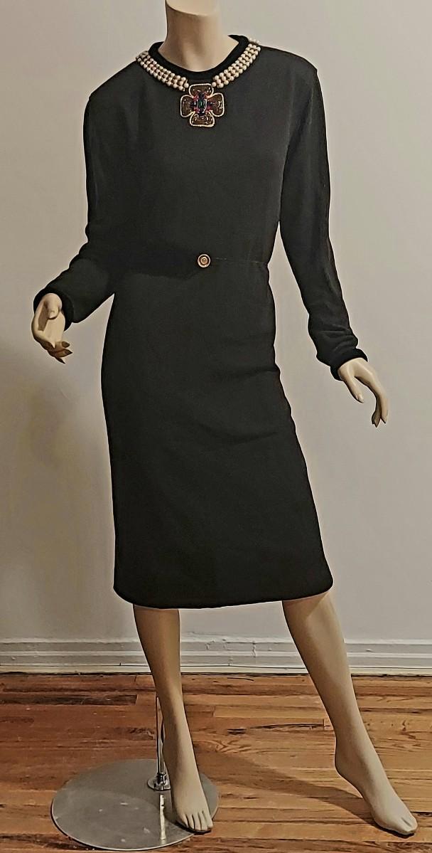 Vtg 80s Oscar de La Renta Cashmere/Wool Blend Embellished wiggle Dress