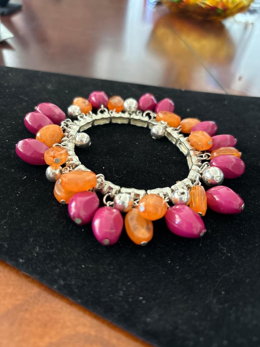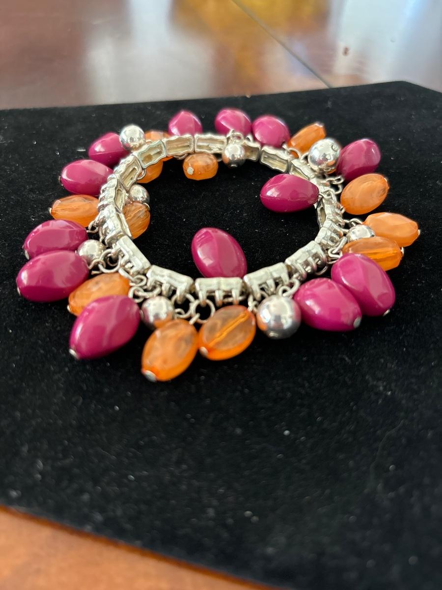 Vtg 80s Pink And Orange Bead Bracelet