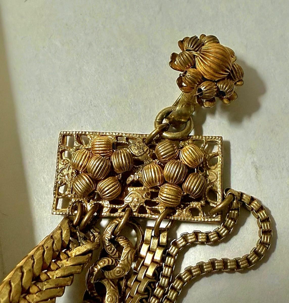 Amazing Design and Details it is Victorian Inspired and with amazing details. Its a must have Wearable Art. Especially for a Miriam Haskell Collector's