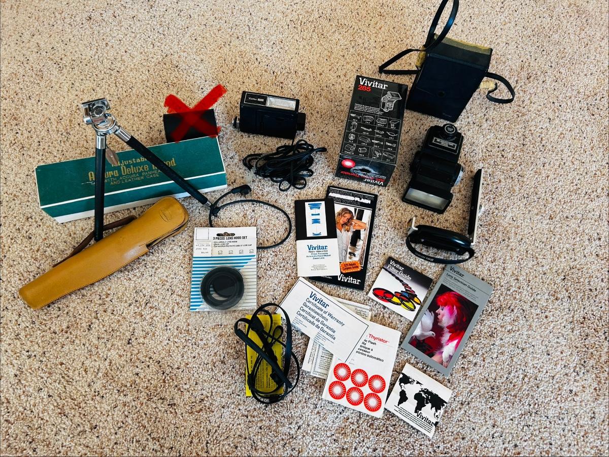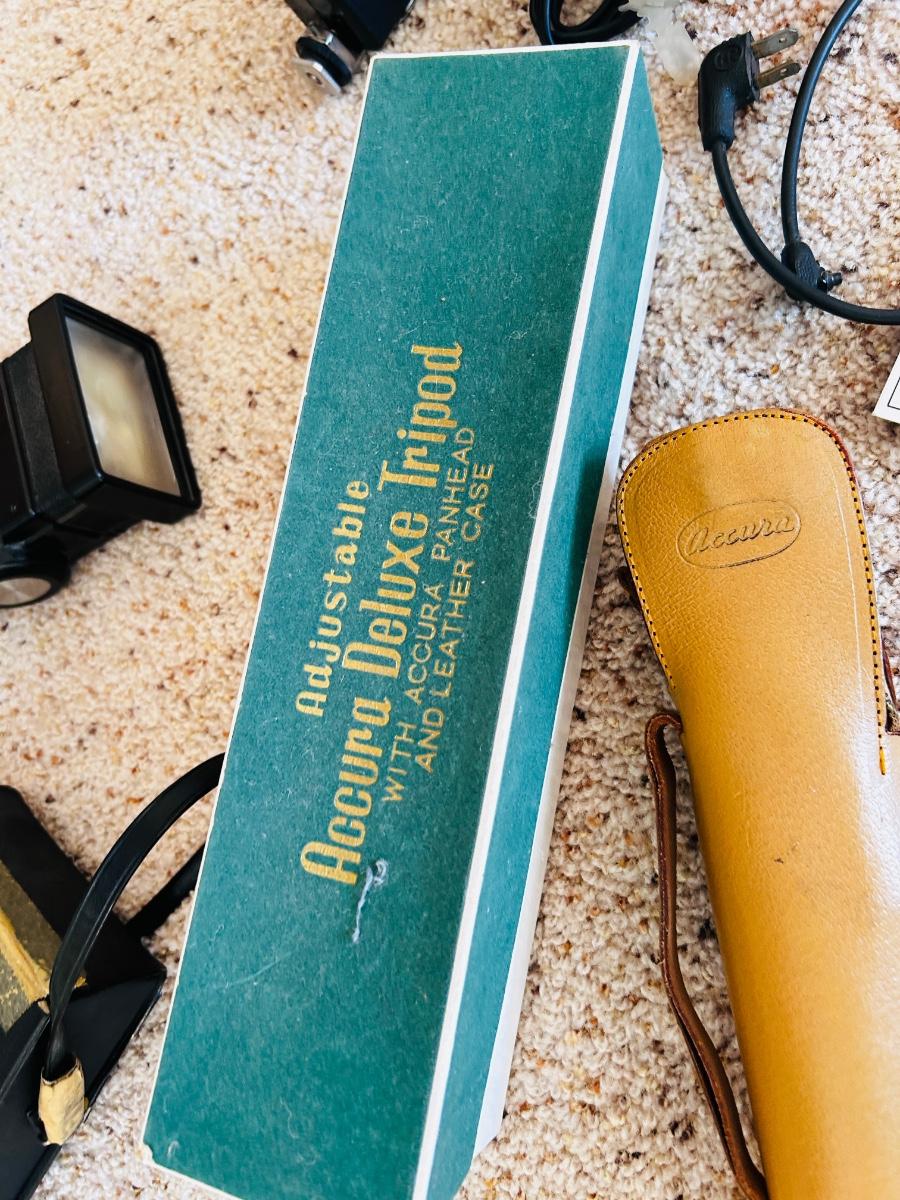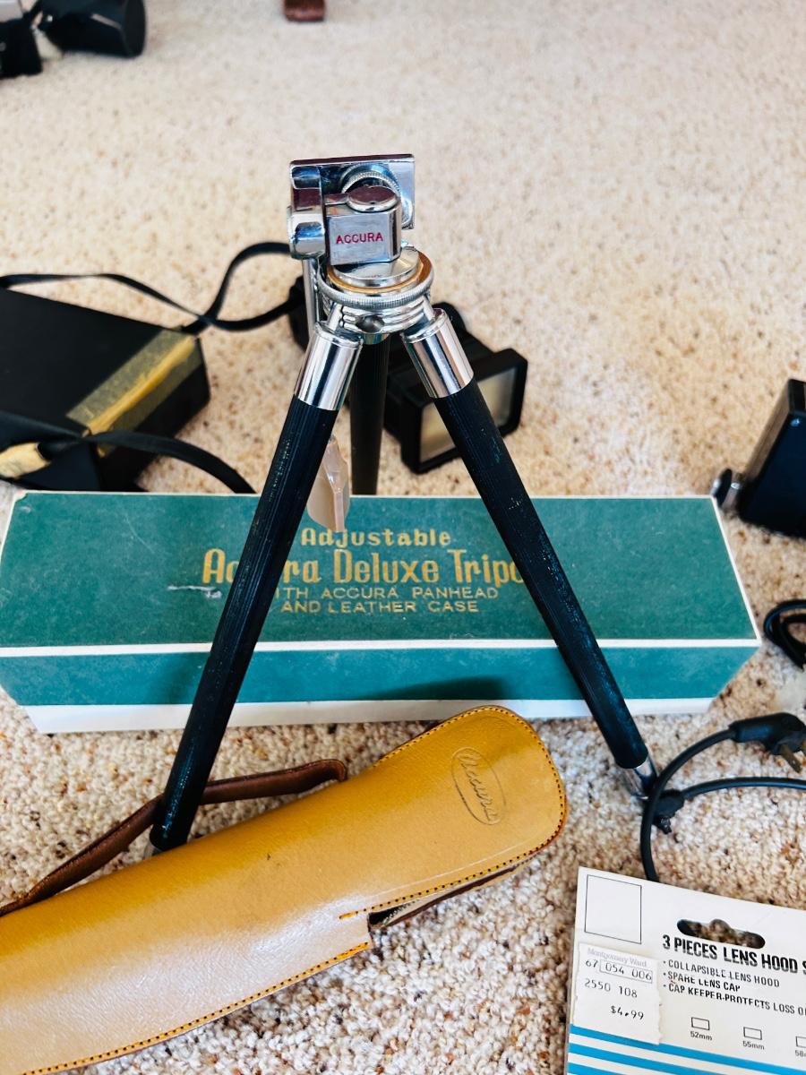 VTG ACCURA DELUXE TRIPOD AND SEVERAL VIVTAR AND OTHER CAMERA EXTRAS