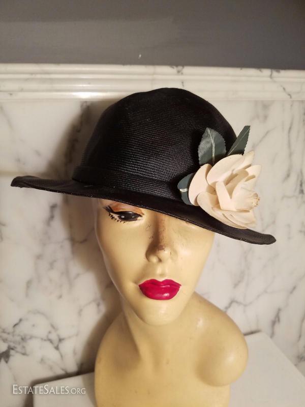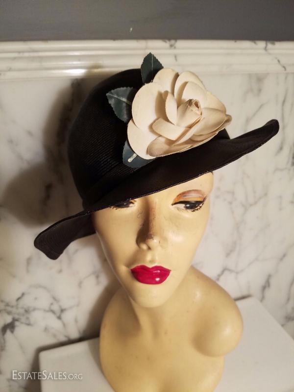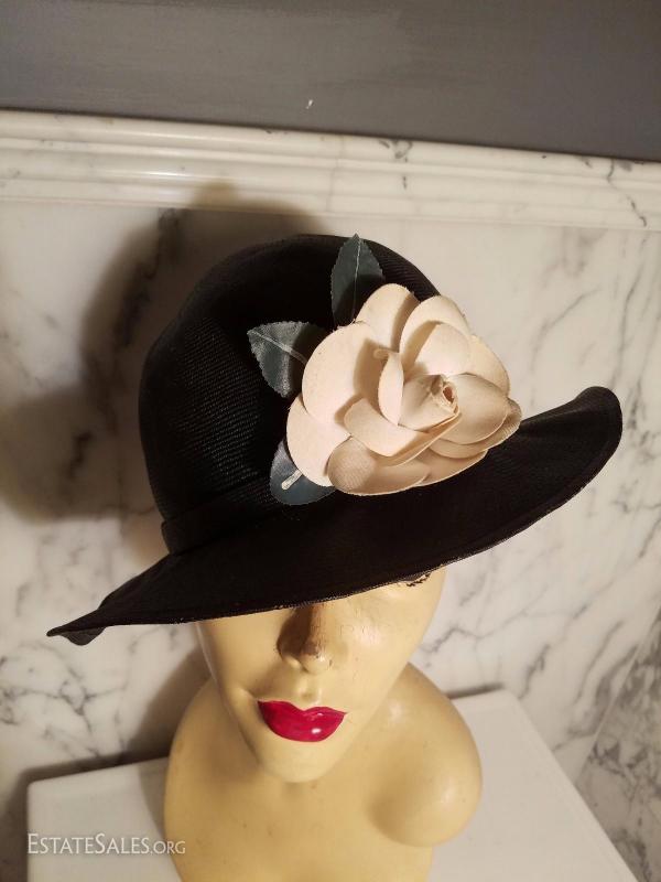 A very beautiful classic Adolfo straw hat with a millinery rose flower