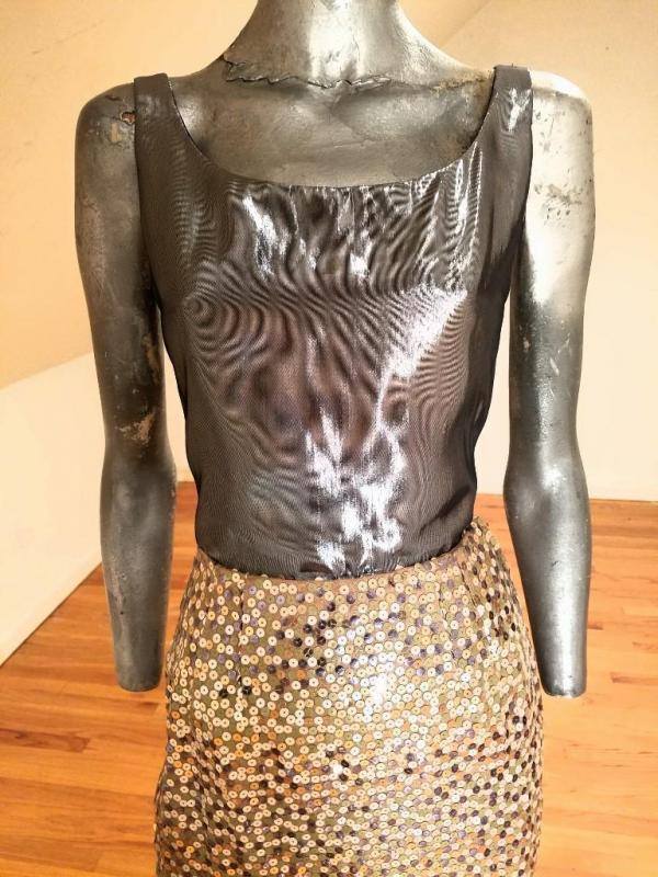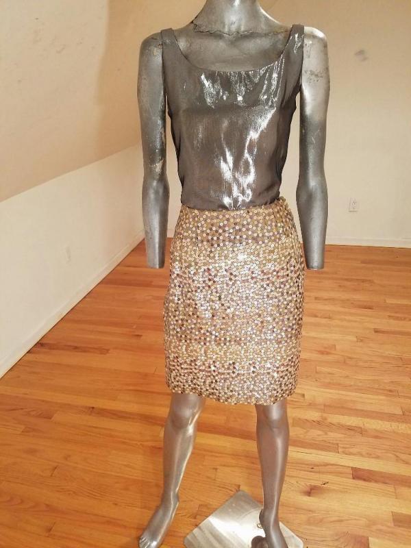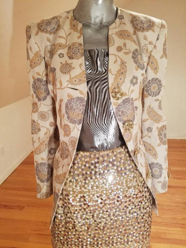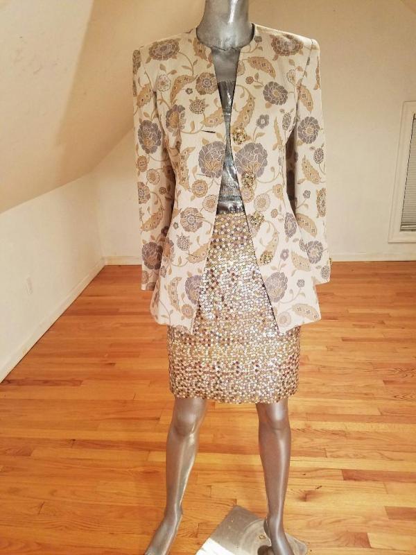 Vtg Albert Nipon 3pc skirt suit metallic lame' top sequin skirt