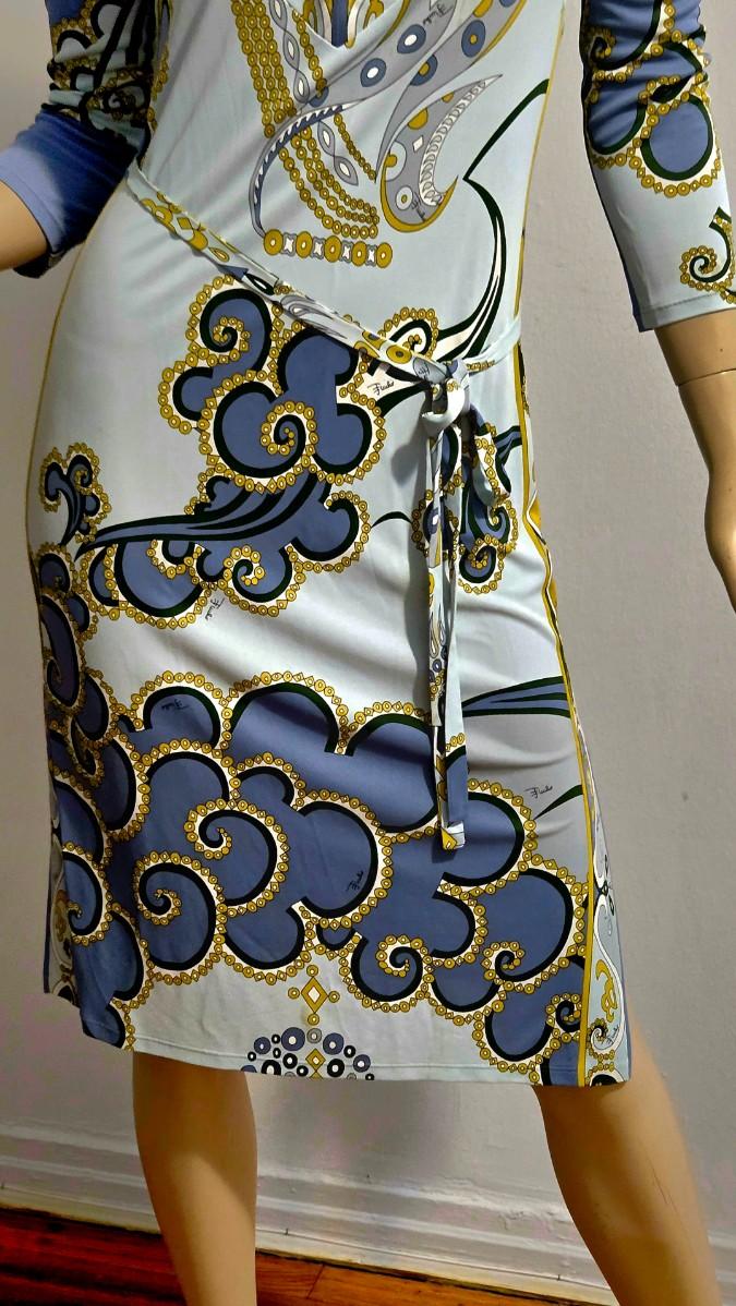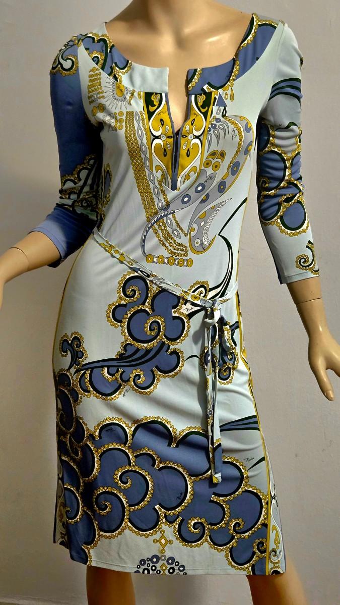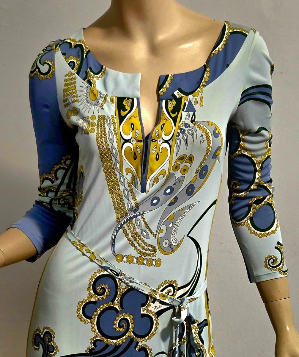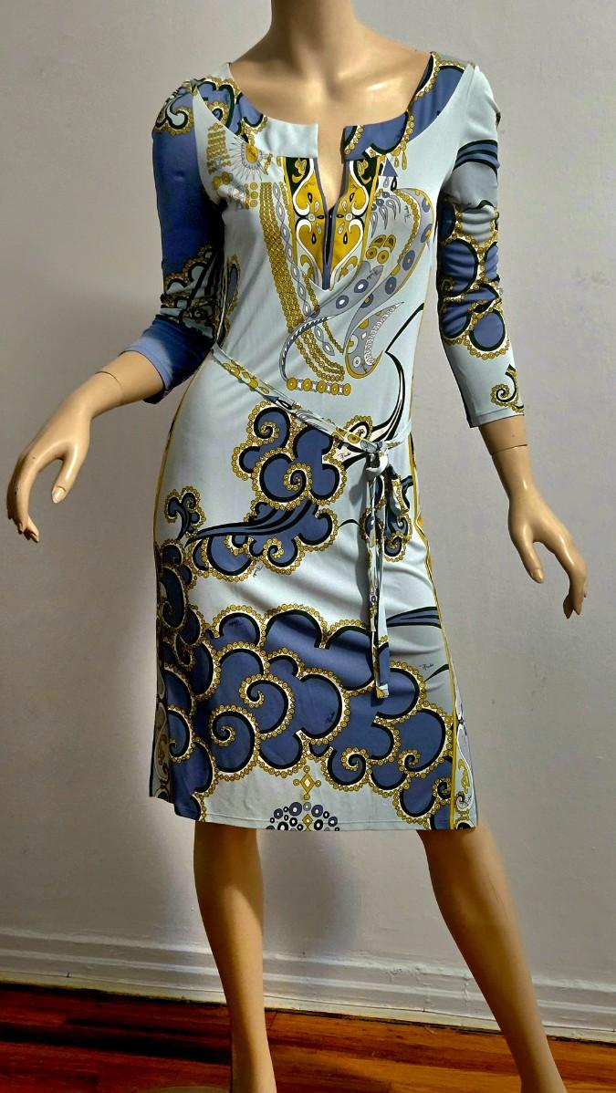 Exquisitely Stunning Design in Blue & Gold print. Pucci Signed with its own Belt