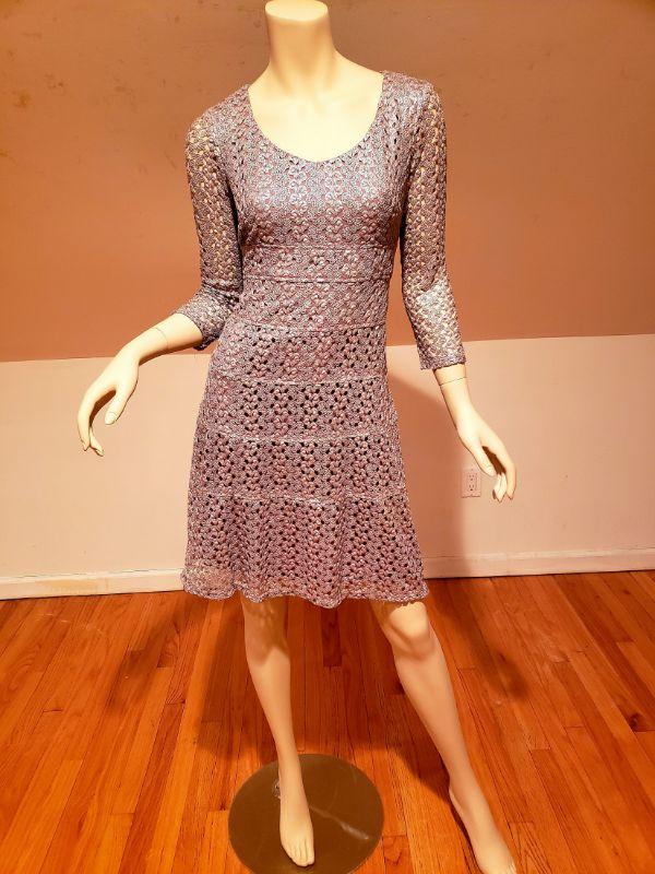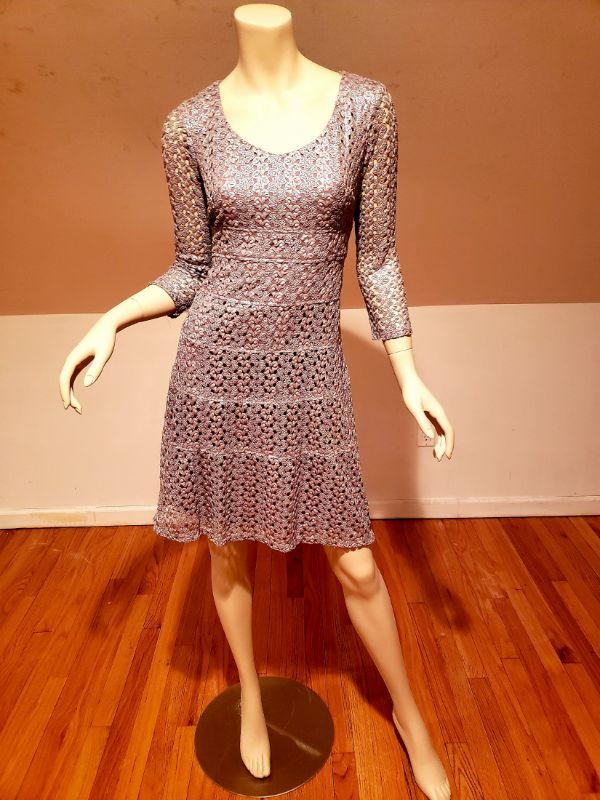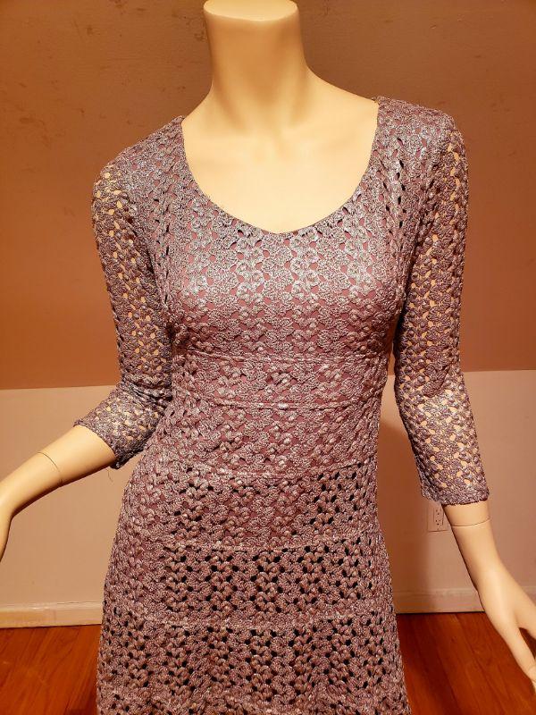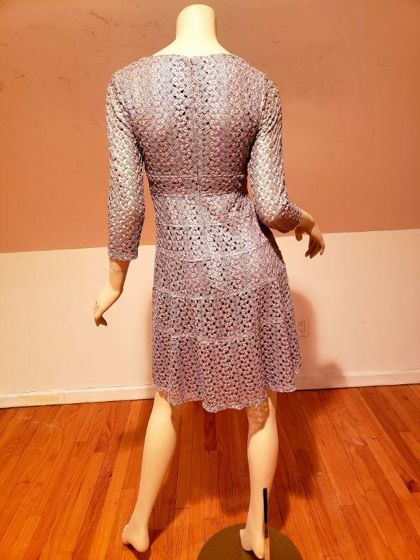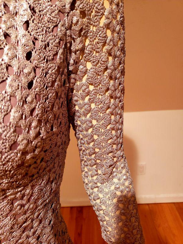 Vtg Anne Klein silver Metallic Macrame wiggle dress