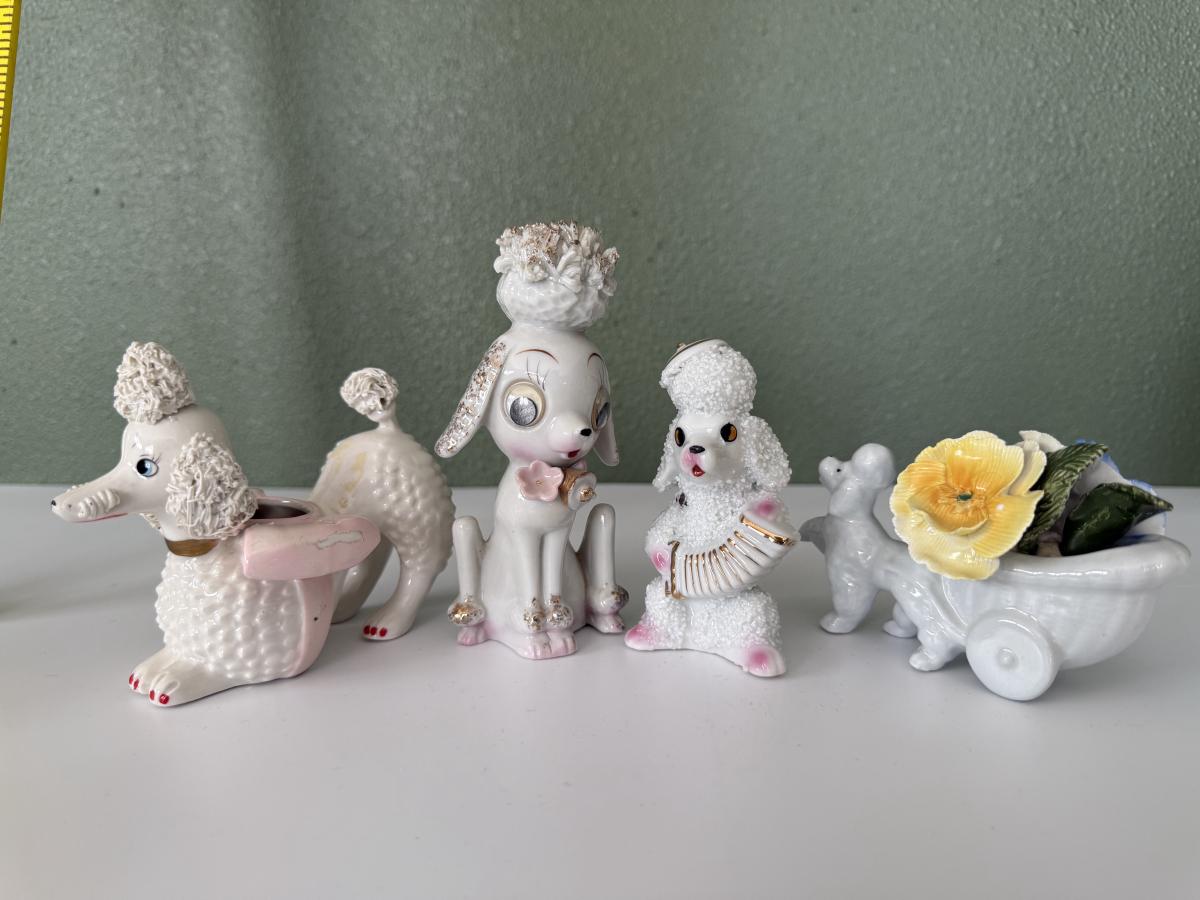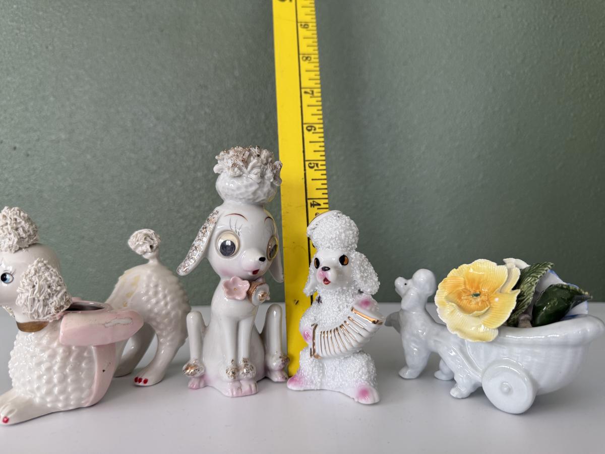 Vtg Anthropomorphic Sugar Poodle w/Accordion, Google Eye Poodle, Japan Spaghetti succulent poodle planter