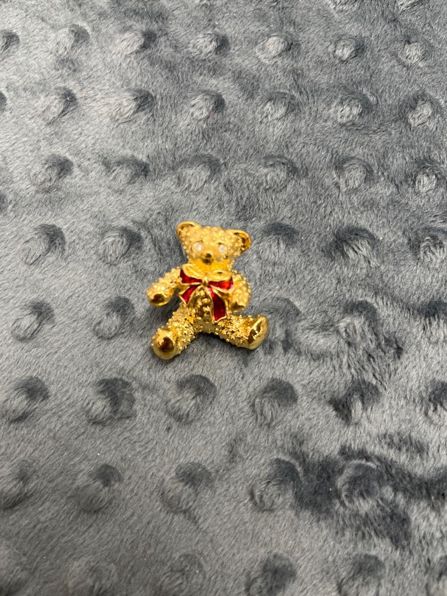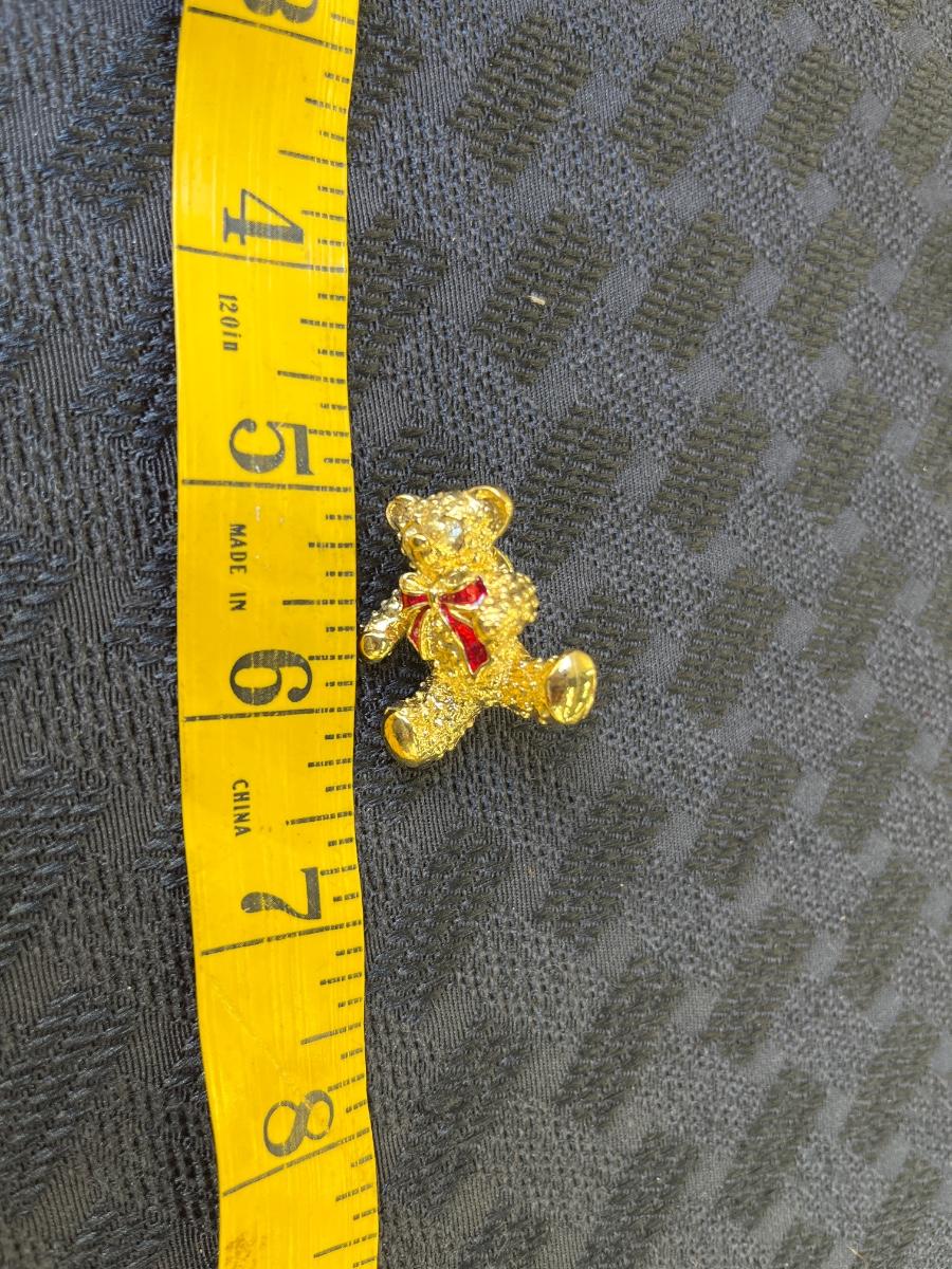 VTG Avon Teddy Bear Red Bow Rhinestone Eyes Animal Toy Gold Tone Lapel Pin