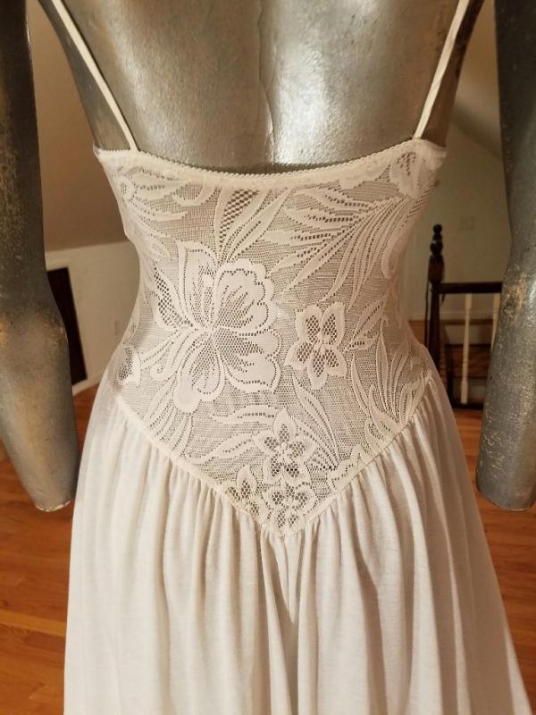 A true beauty from the 1960-70's Longline underwire lace bra and bodice the skirt is fluid.