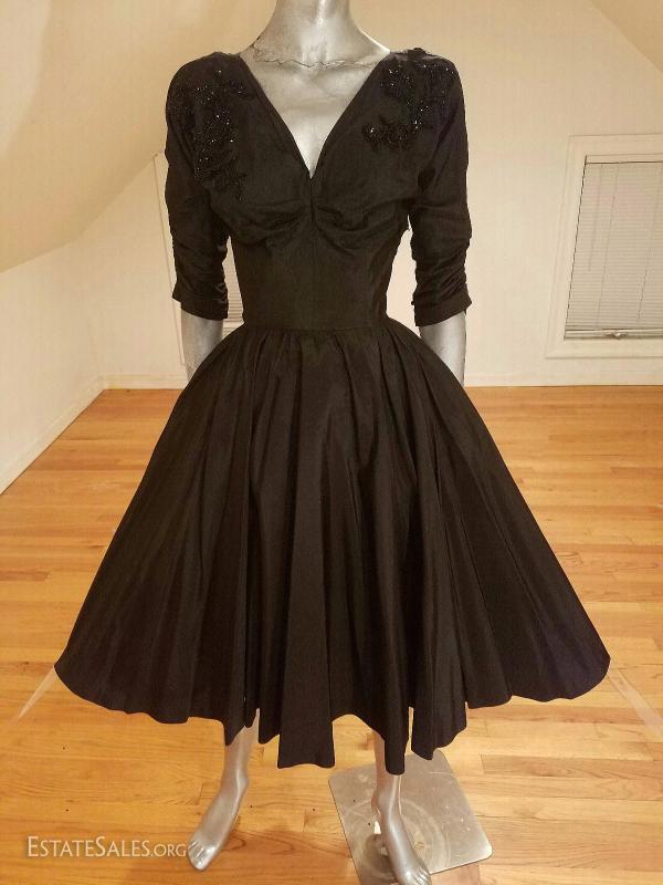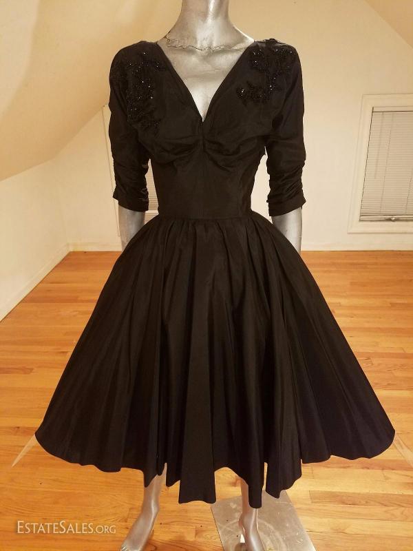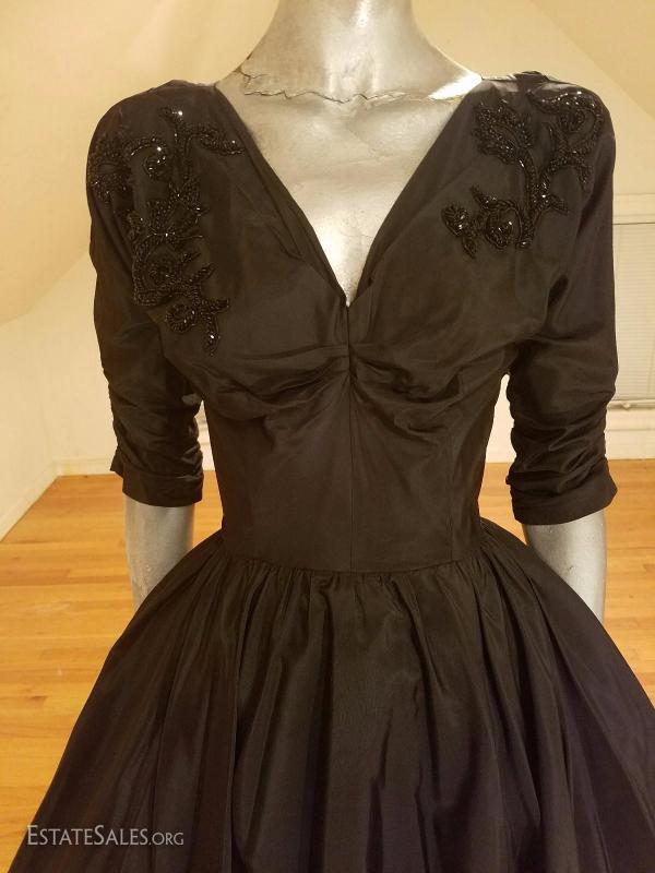 Vtg Bernetti Original Couture 1950's full sweep shantung beaded dress V