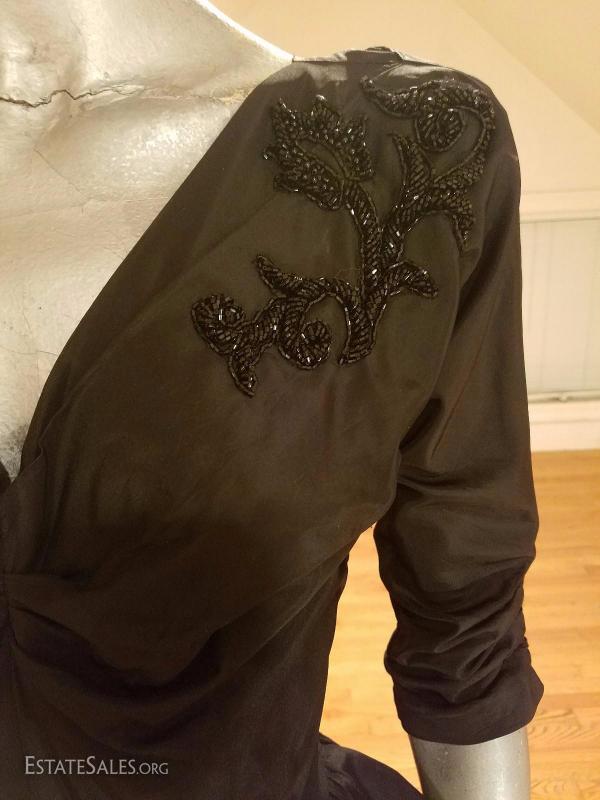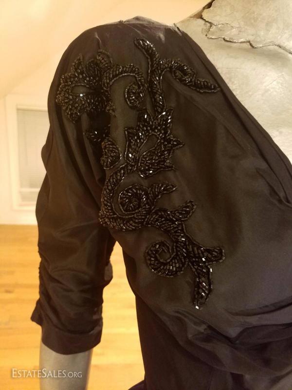 This one is to Die for It is an Original Bernetti Couture with amazing onyx bead embroidery on bodice. Has yrds upon yrds of silk shantung plus a raw silk linen under layer for fullness.