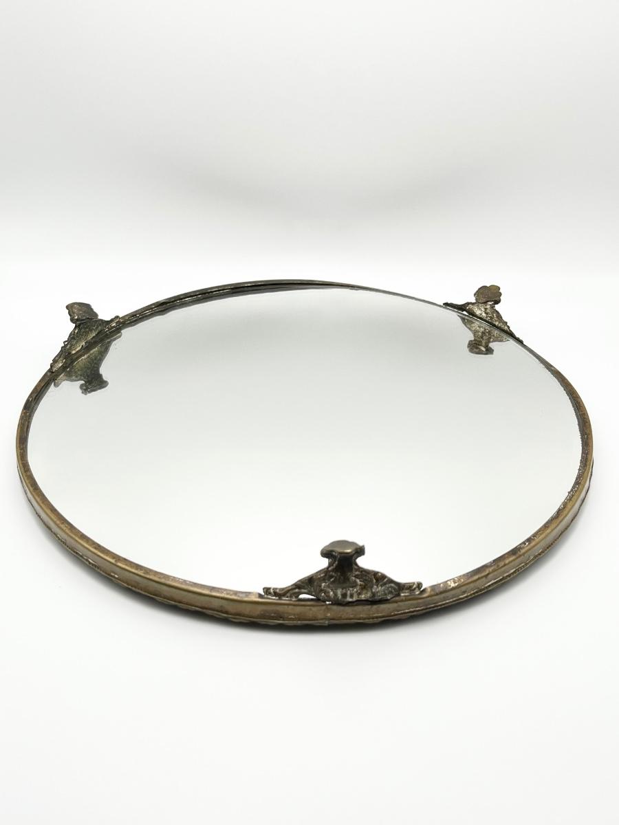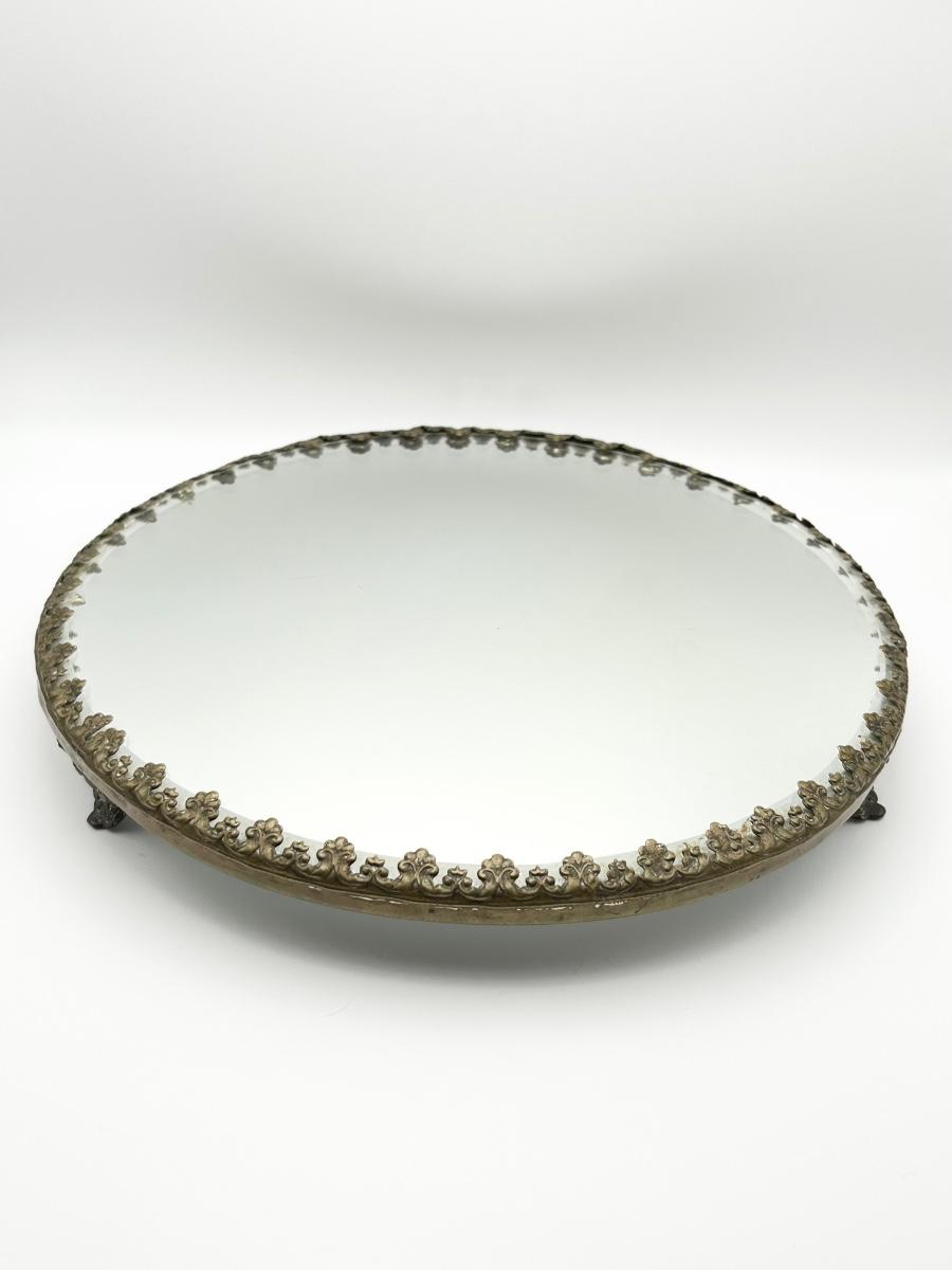 Vtg. Beveled Mirror With Footed Tray