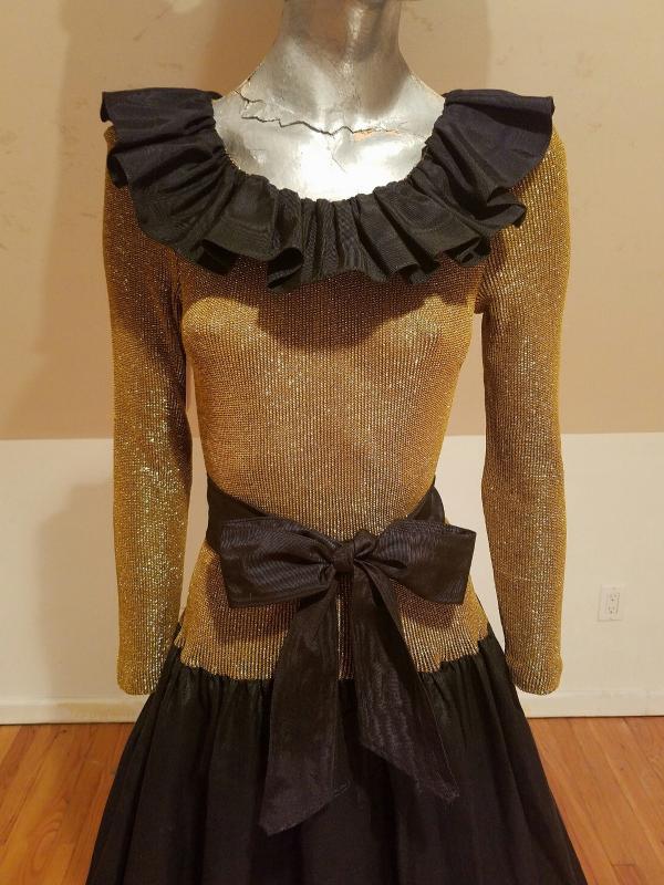 This one is Couture Vintage circa 1970 from an amazing Renown Couturier Bill Blass Iconic gown Gold Lame' knit bodice with shantung full skirt and sash belt.