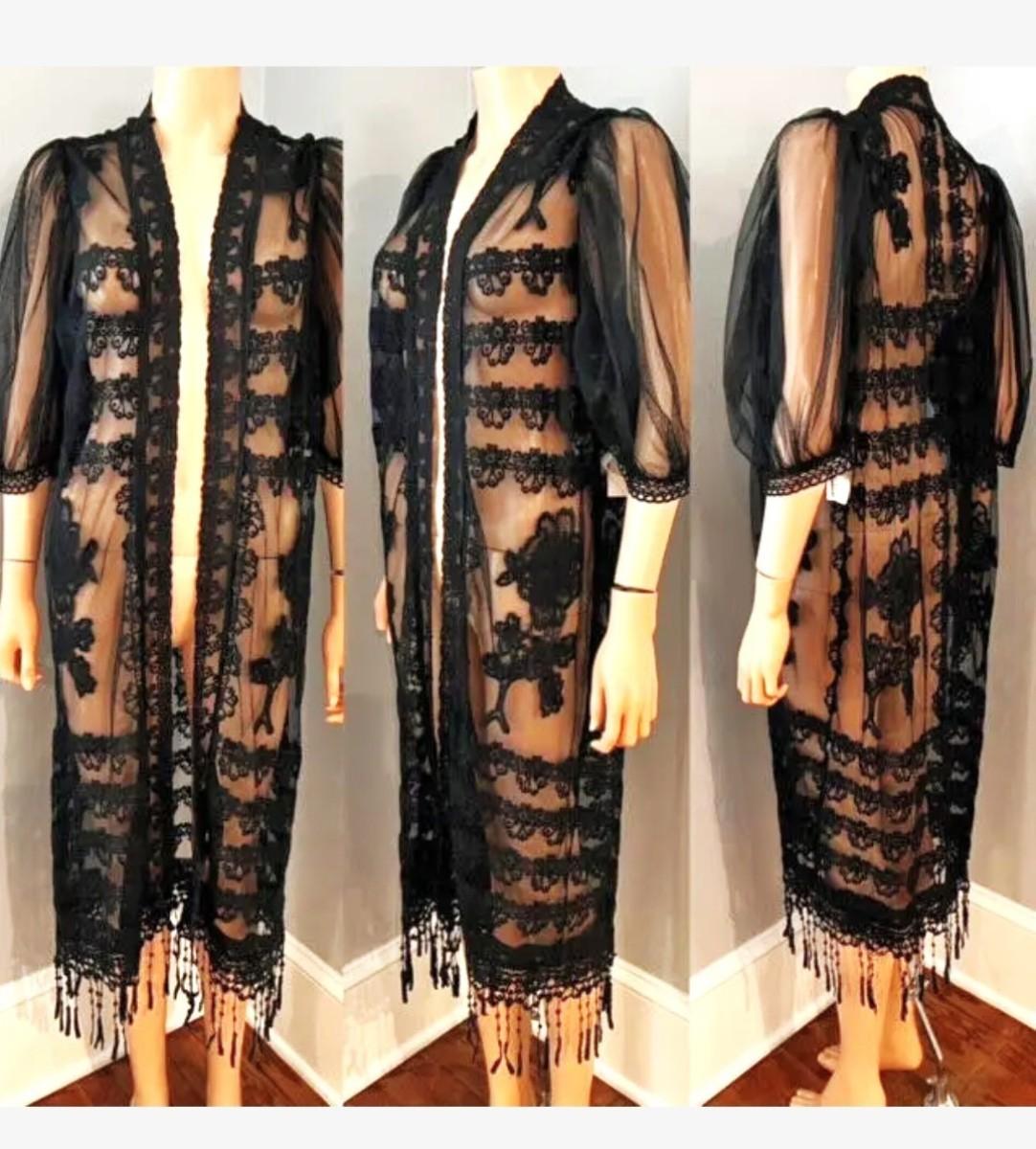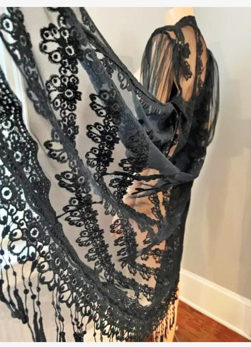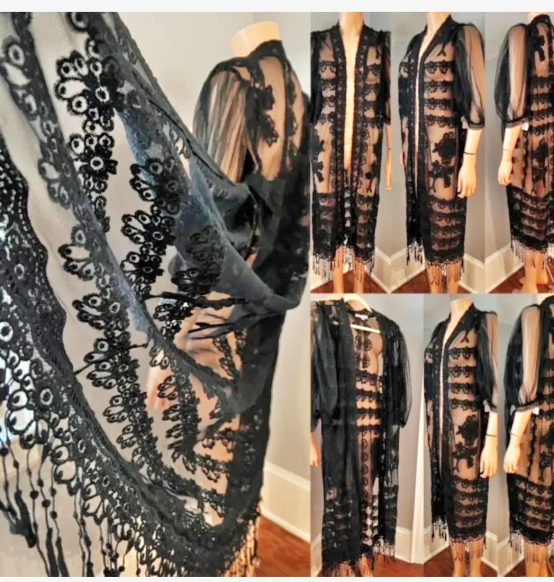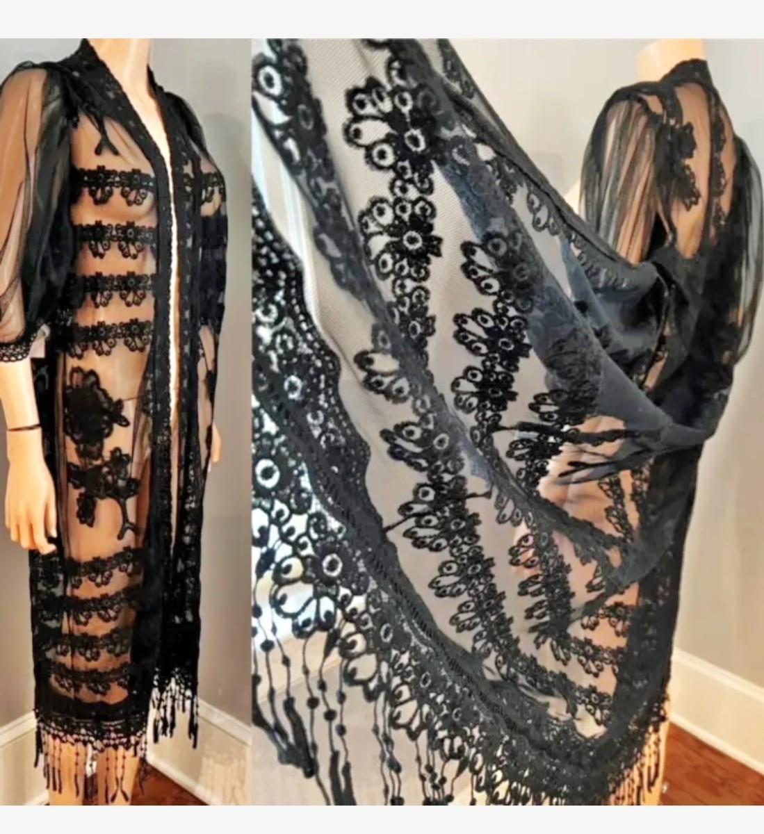Embroidered Lace on Net with Guipure Bordeer Hemline Lace and Fringes.