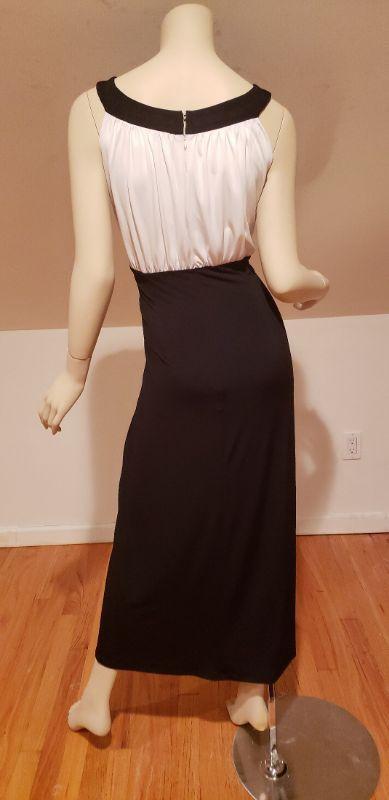 Beautiful dress with silver metal Egyptian revival neckline color block maxi hostess dress, jersey fluid fabtic.