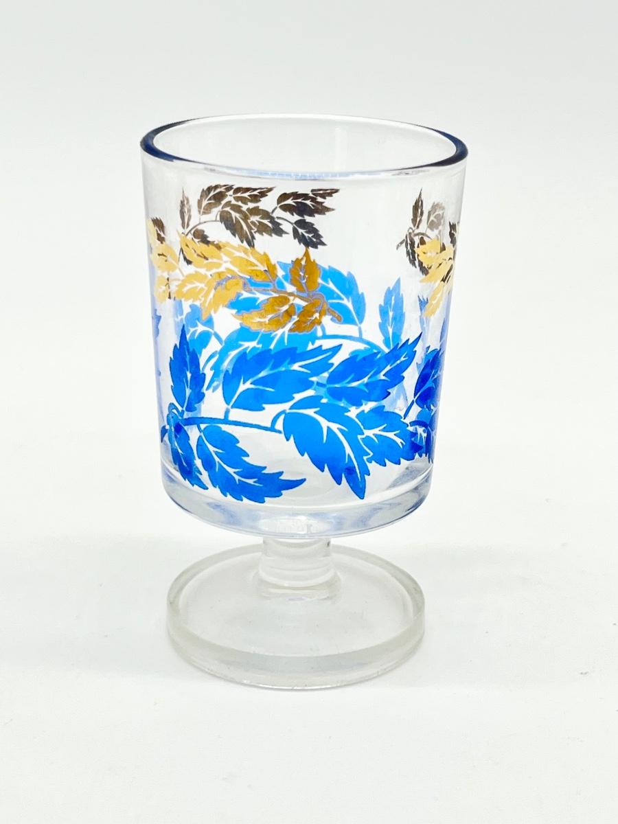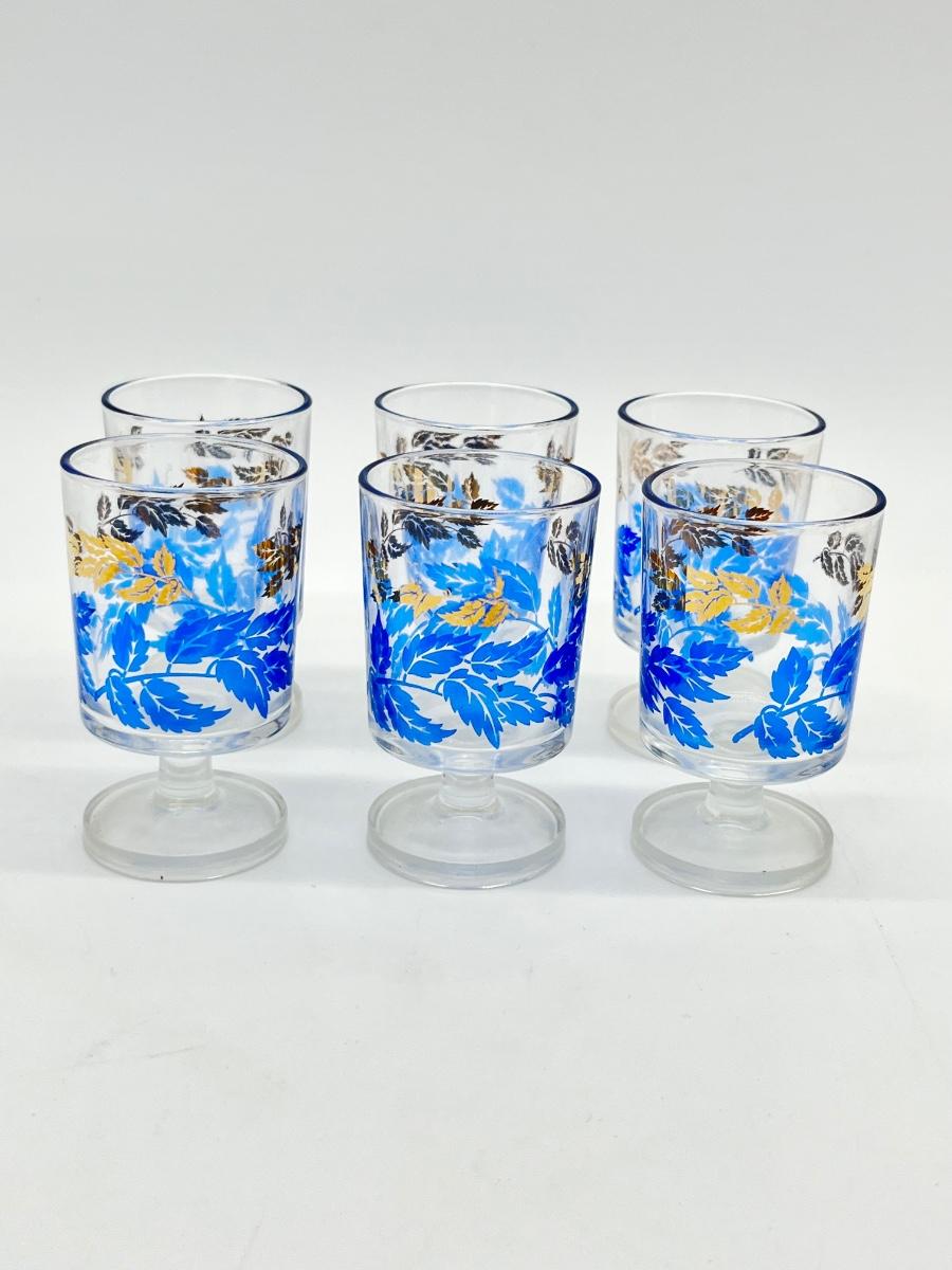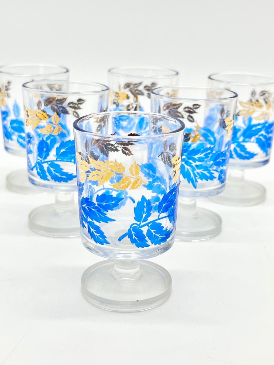 Vtg. Blue & Gold Leaf Footed Cordial Glasses ~ Set Of Six (6)