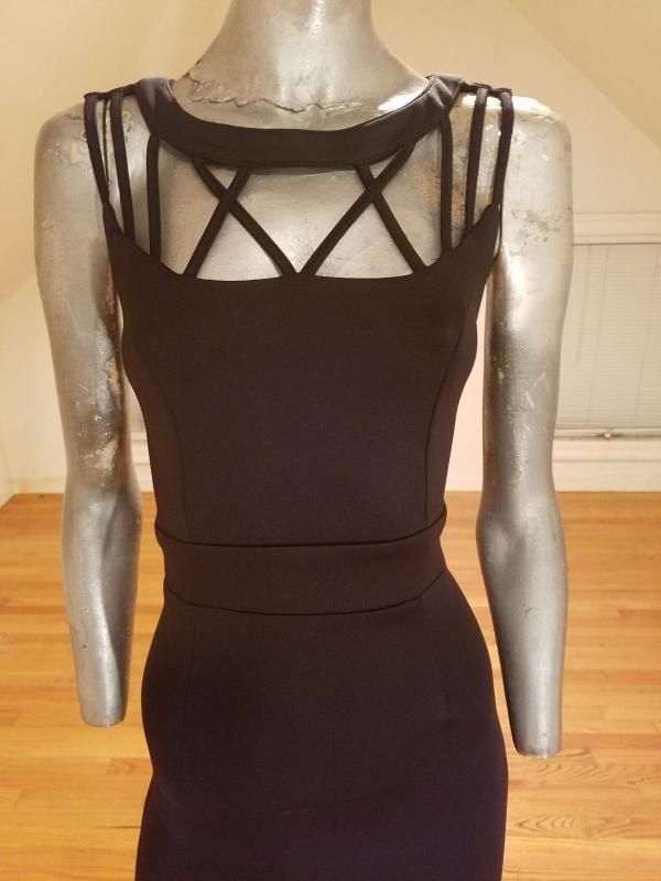 A beautiful little black dress open piping bodice details .Stretch jersey and a beauty