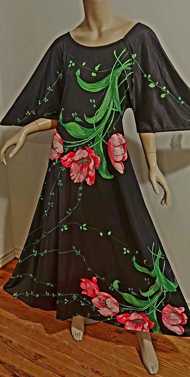 Vtg Butterfield 8 Maxi Floral Kaftan Bar Sleeves