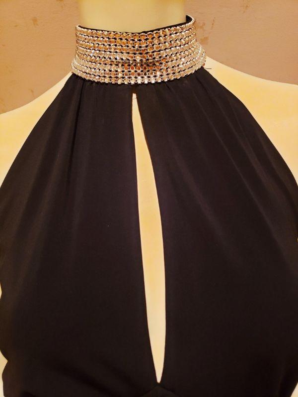 A Beauty from the 1980's by Cache' draped with rhinestone collar