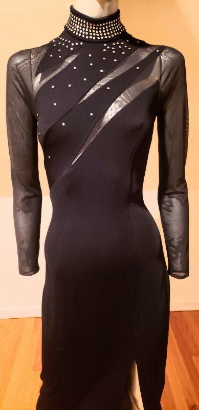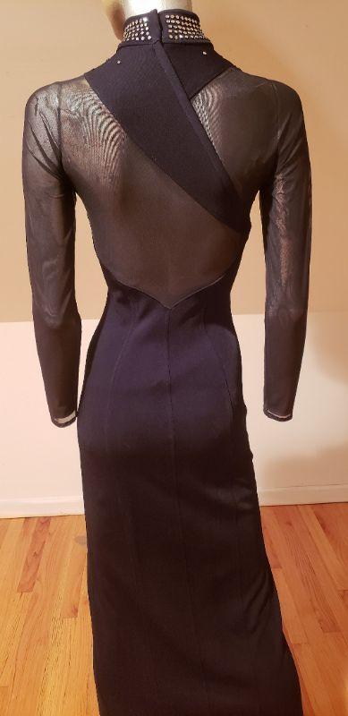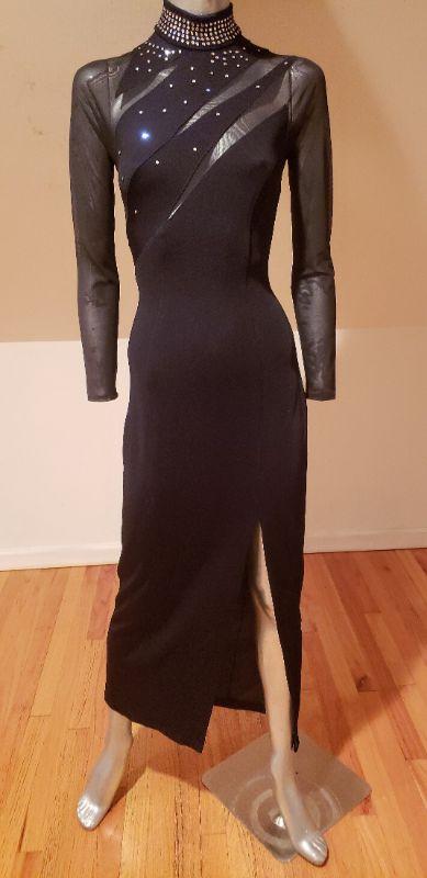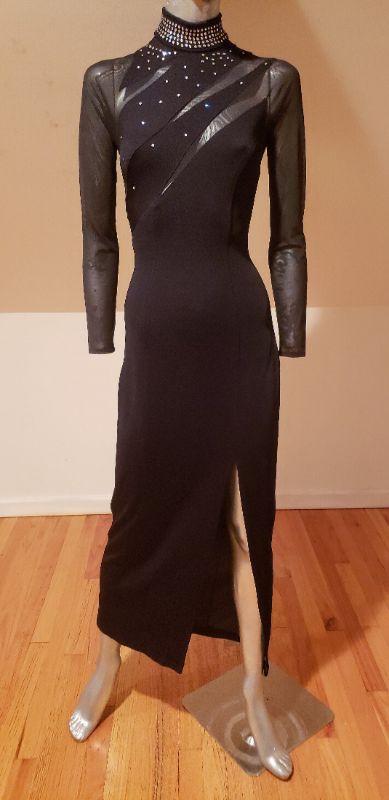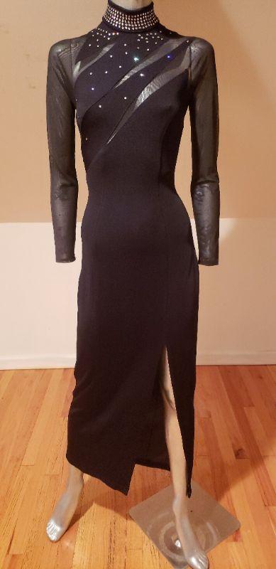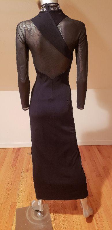 Amazing beauty Lycra jersey and tulle with rhinestone effect. Maxi with slits in very good vintage condition