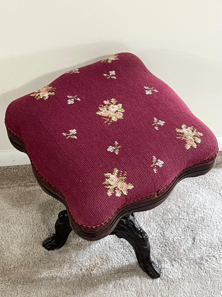 Needlepoint seat ~ 19”-22” H x 13” Square seat