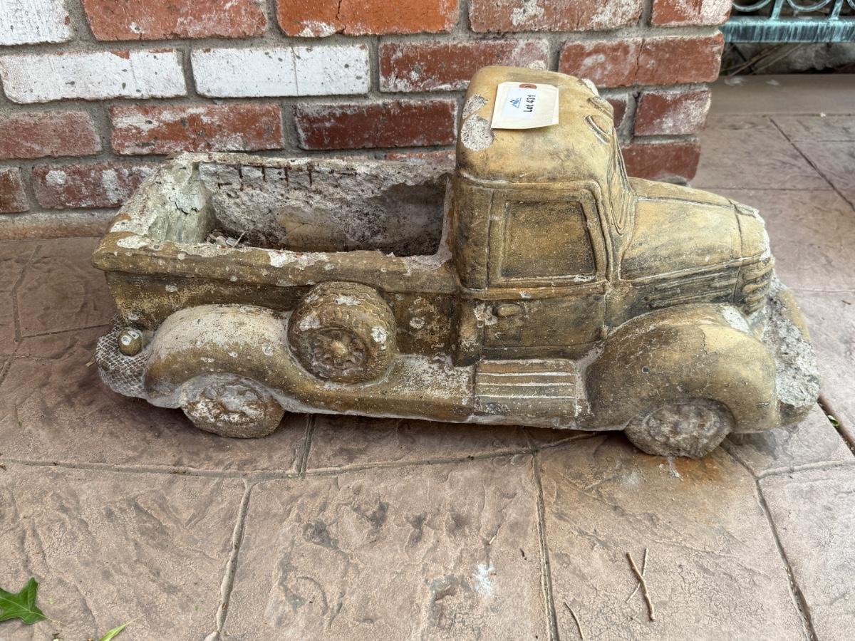 Vtg. Cement 2’l x 15”t Truck shaped outdoor planter