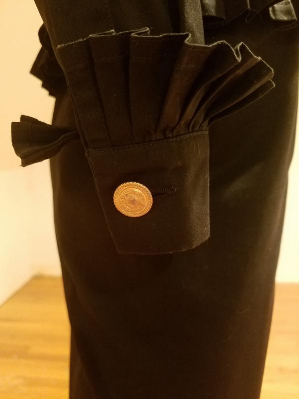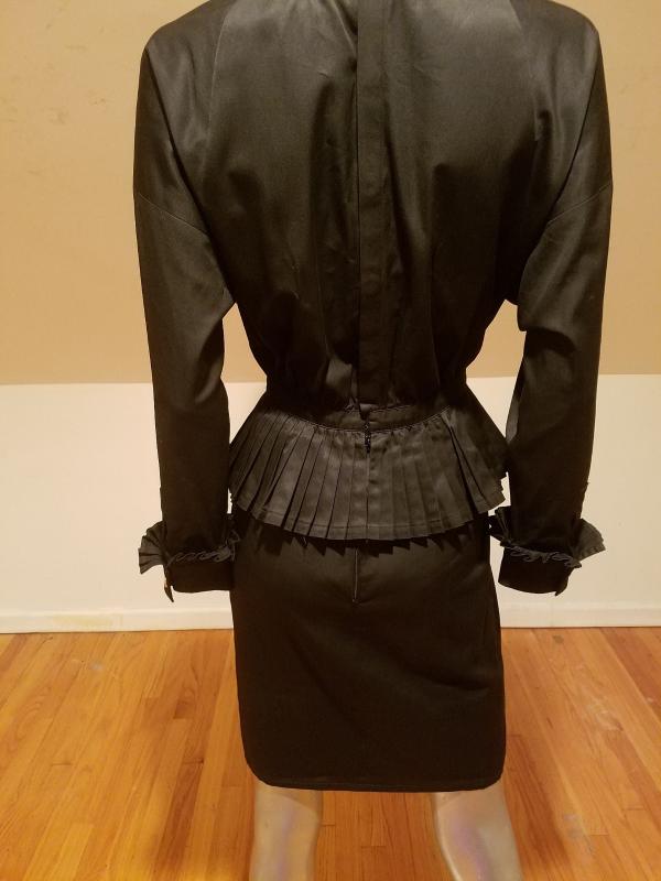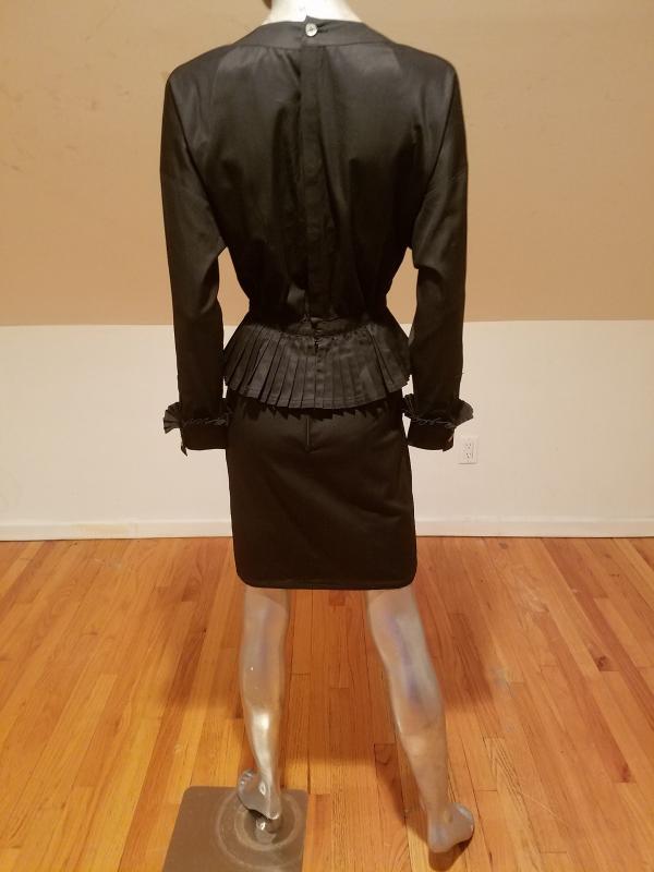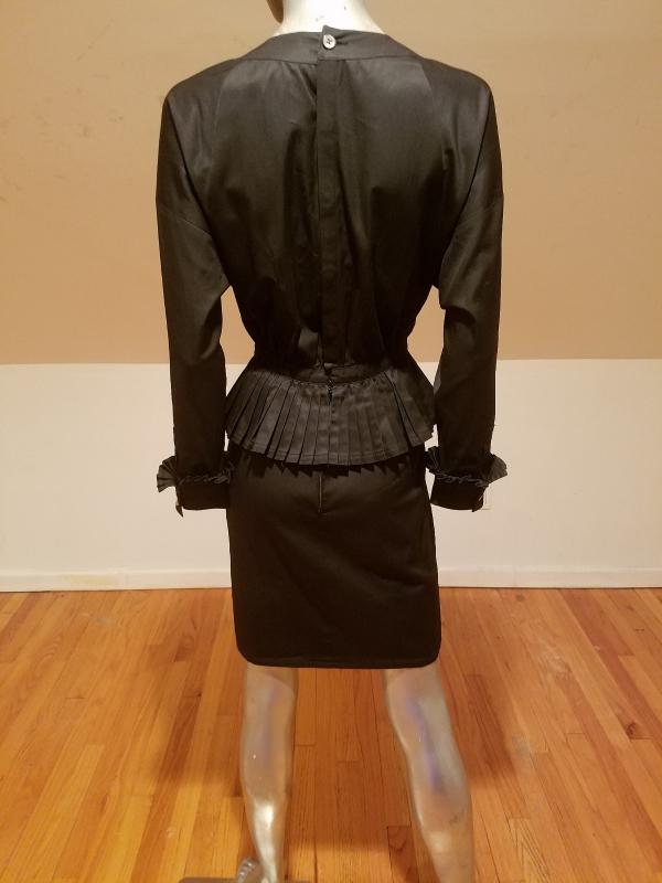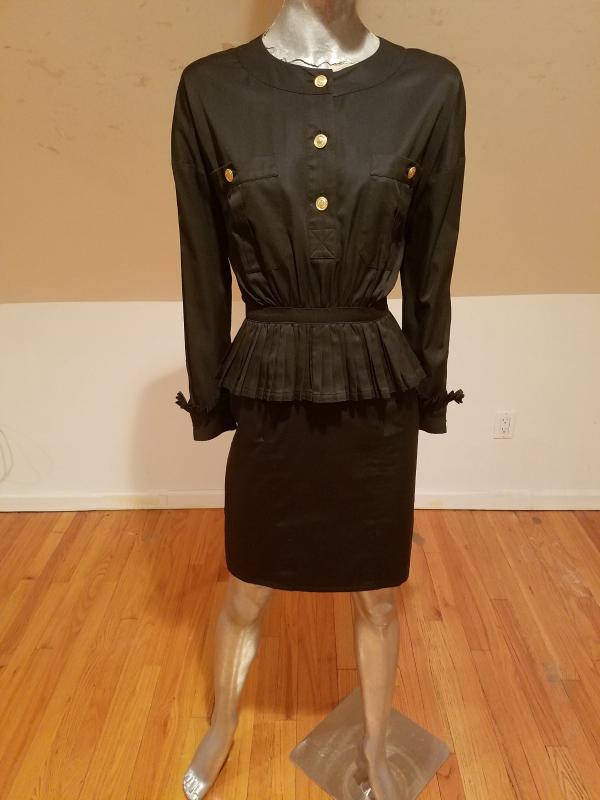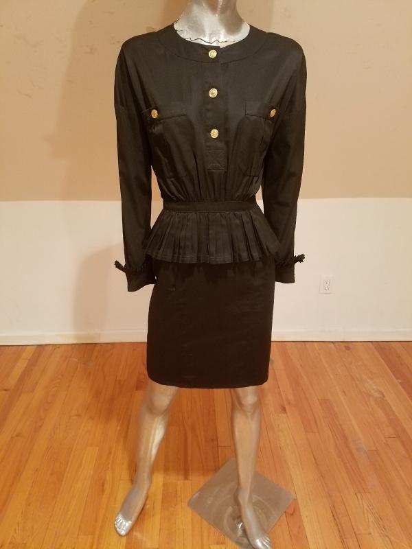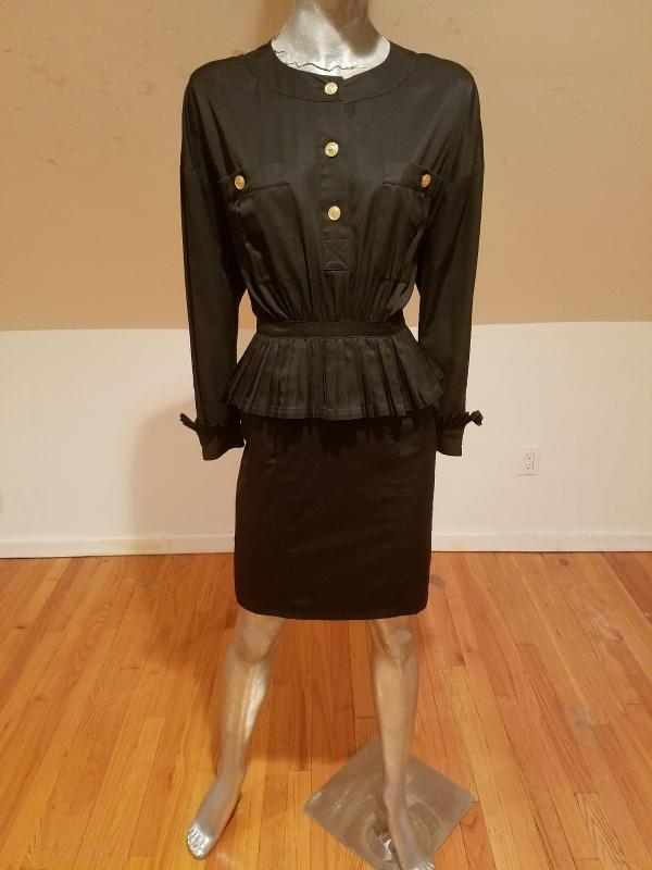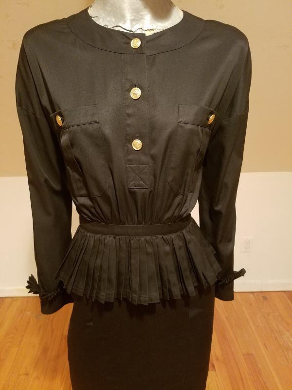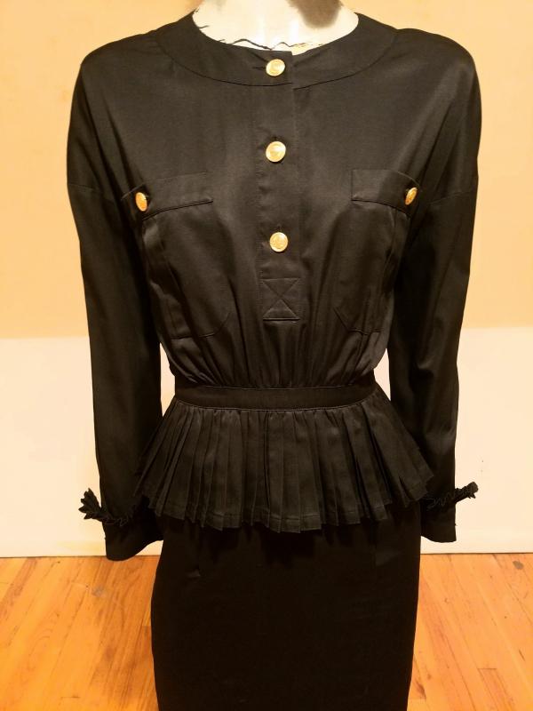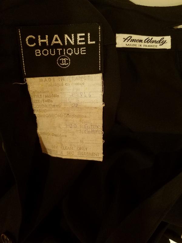 This is a Rare Chanel boutique Couture Amen Wardy dress with a mazing pleated basque details and same pleats at sleeves. The buttons are Coco Chanel Profile in Gold. Lined and Couture finished This dress is a Classic Beauty. In very good Vintage condition it is to die for. And so very special classic Chanel,Paris.