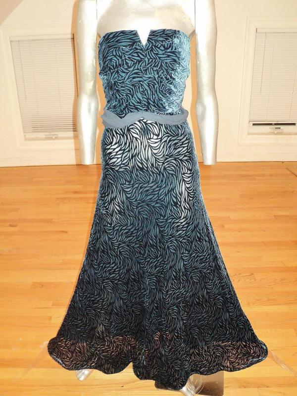 Vtg Chetta B. Strapless strapless trumpet gown embossed illusion velour