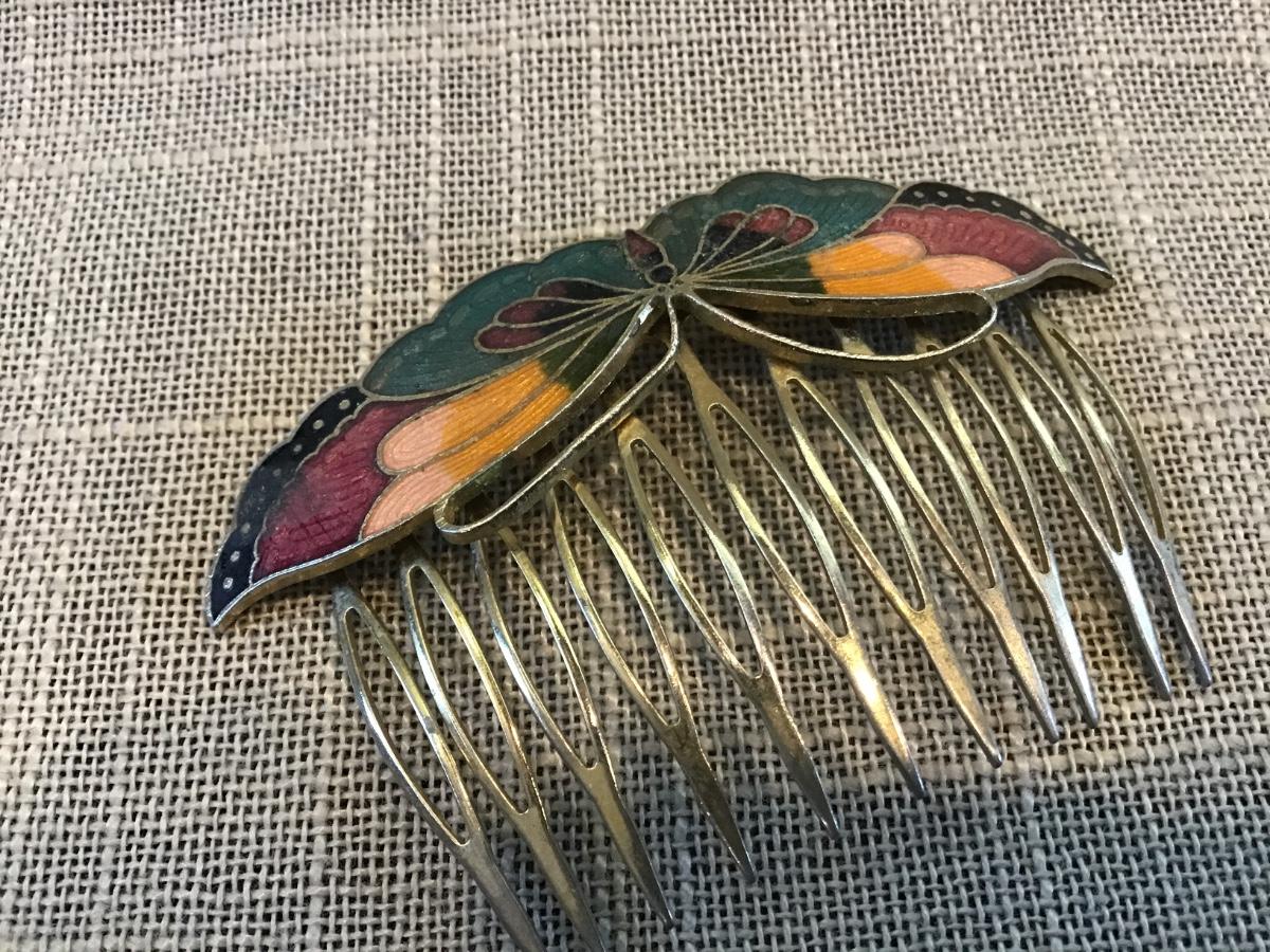 VTG CHINESE CLOISONNÉ ENAMEL BUTTERFLY SHAPED HAIR COMB