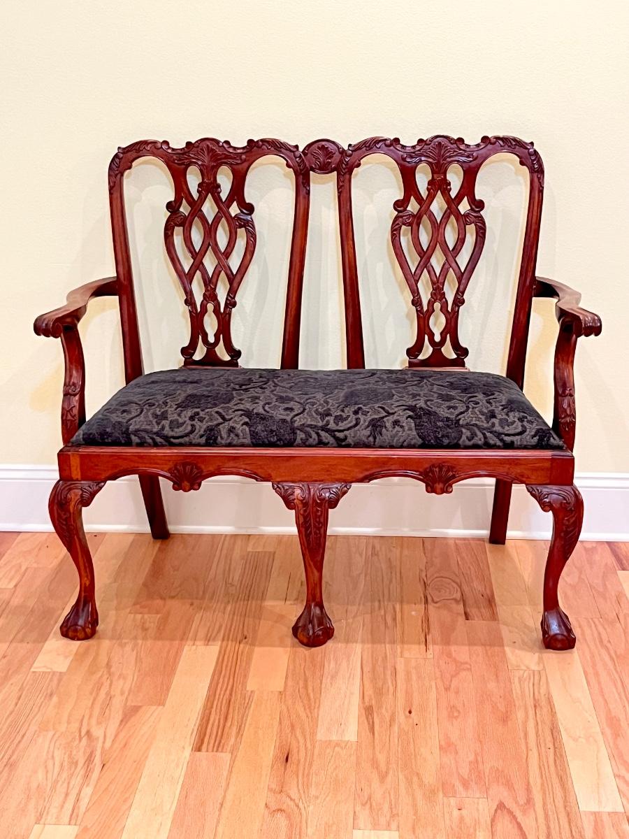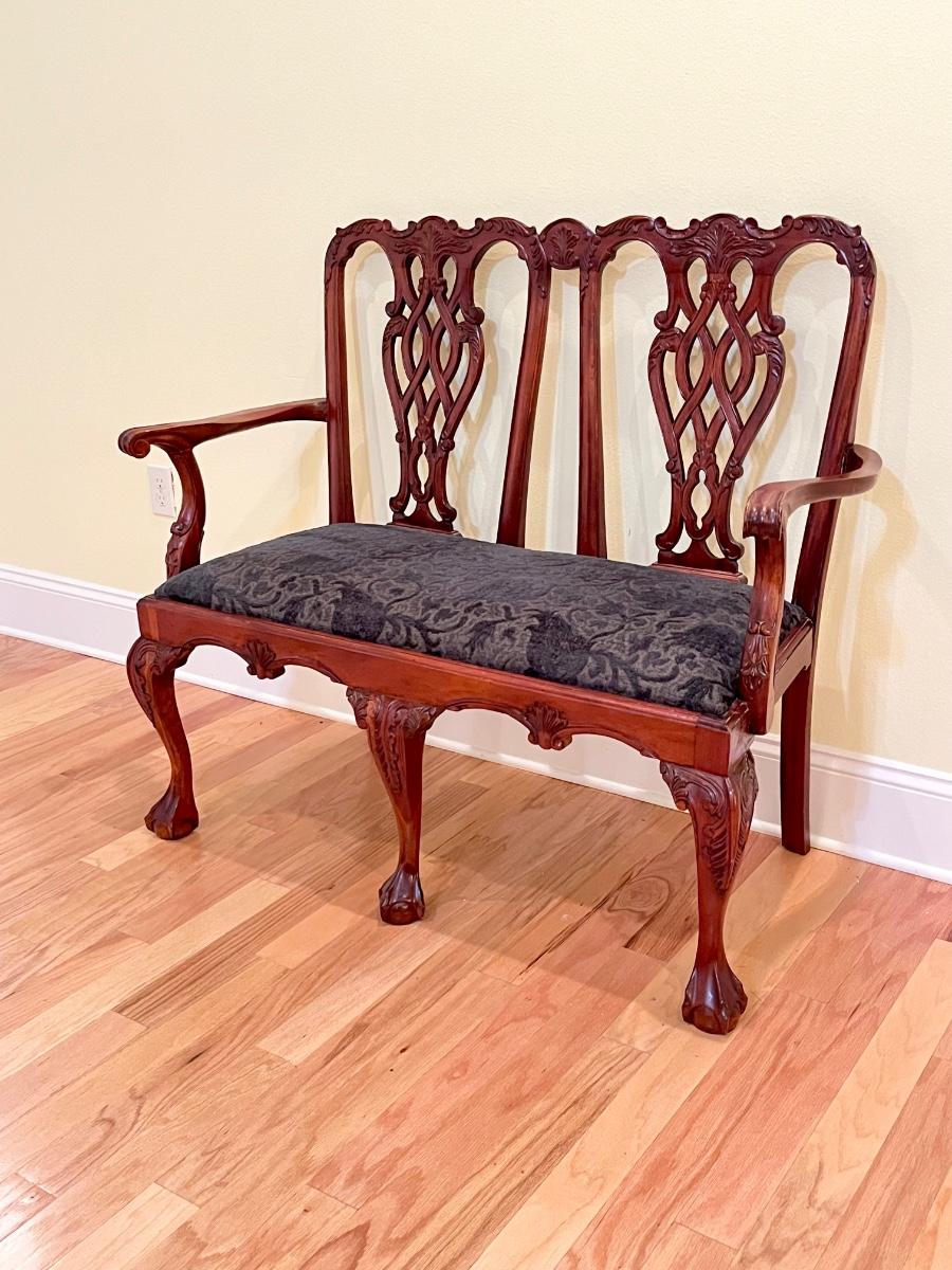 Vtg. Chippendale Style Mahogany Bench ~ With Ball & Clawfoot
