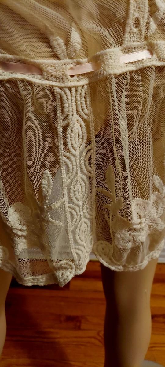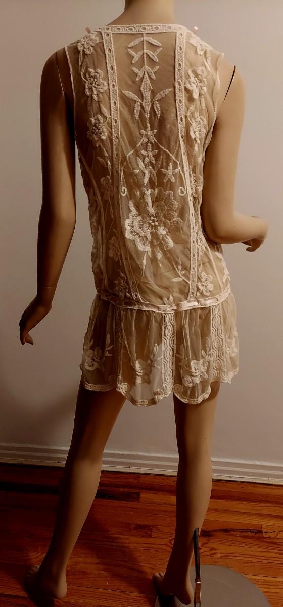 Gorgeous Layering Lace on Tulle Embroidery long Tunic with Baby Pink silk Ribbons.