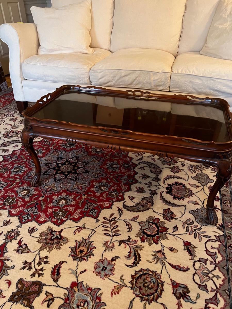 VTG Clawfoot Wooden Glasstop Coffee Table
