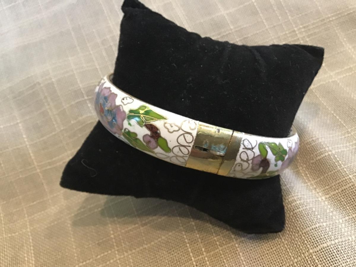 Vtg Cloisonne Enamel and Brass Chinese Hinged Chunky Bangle Bracelet