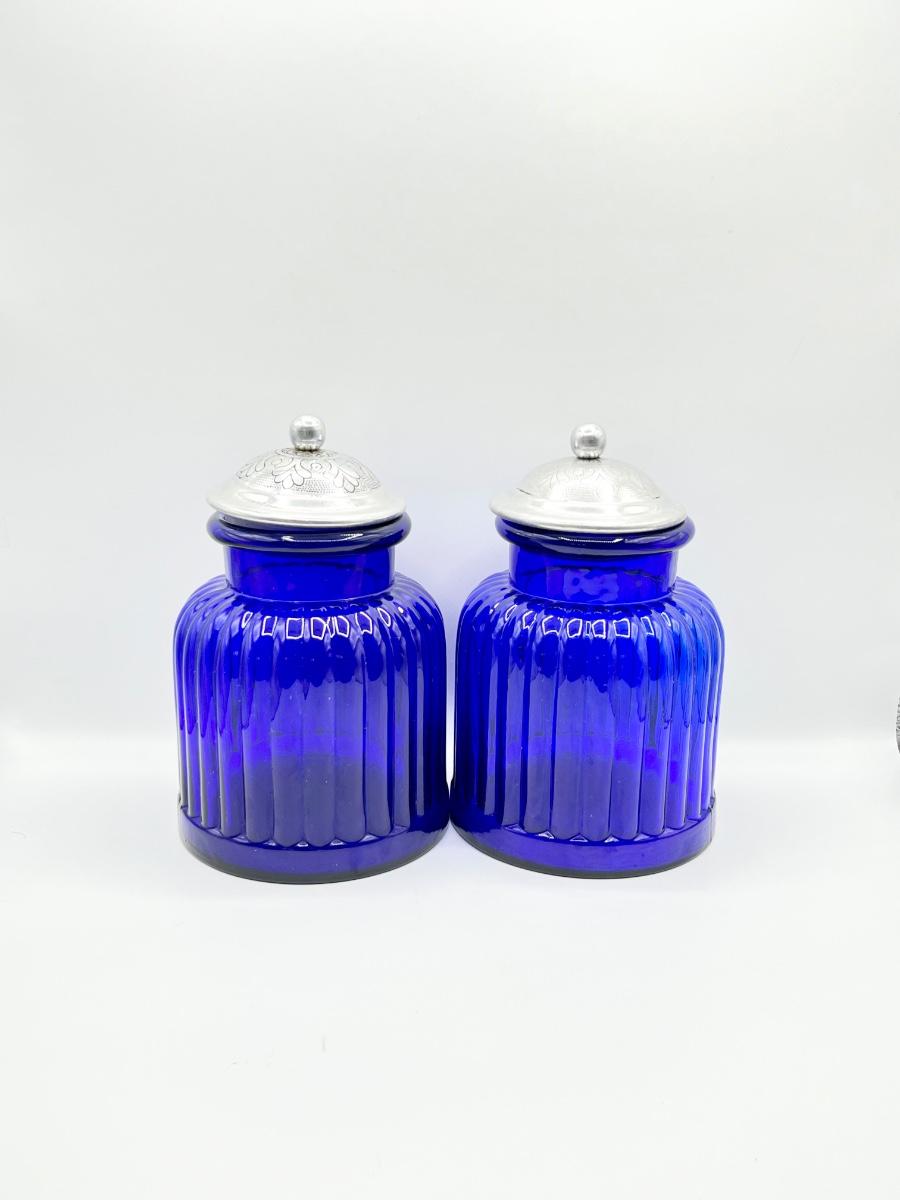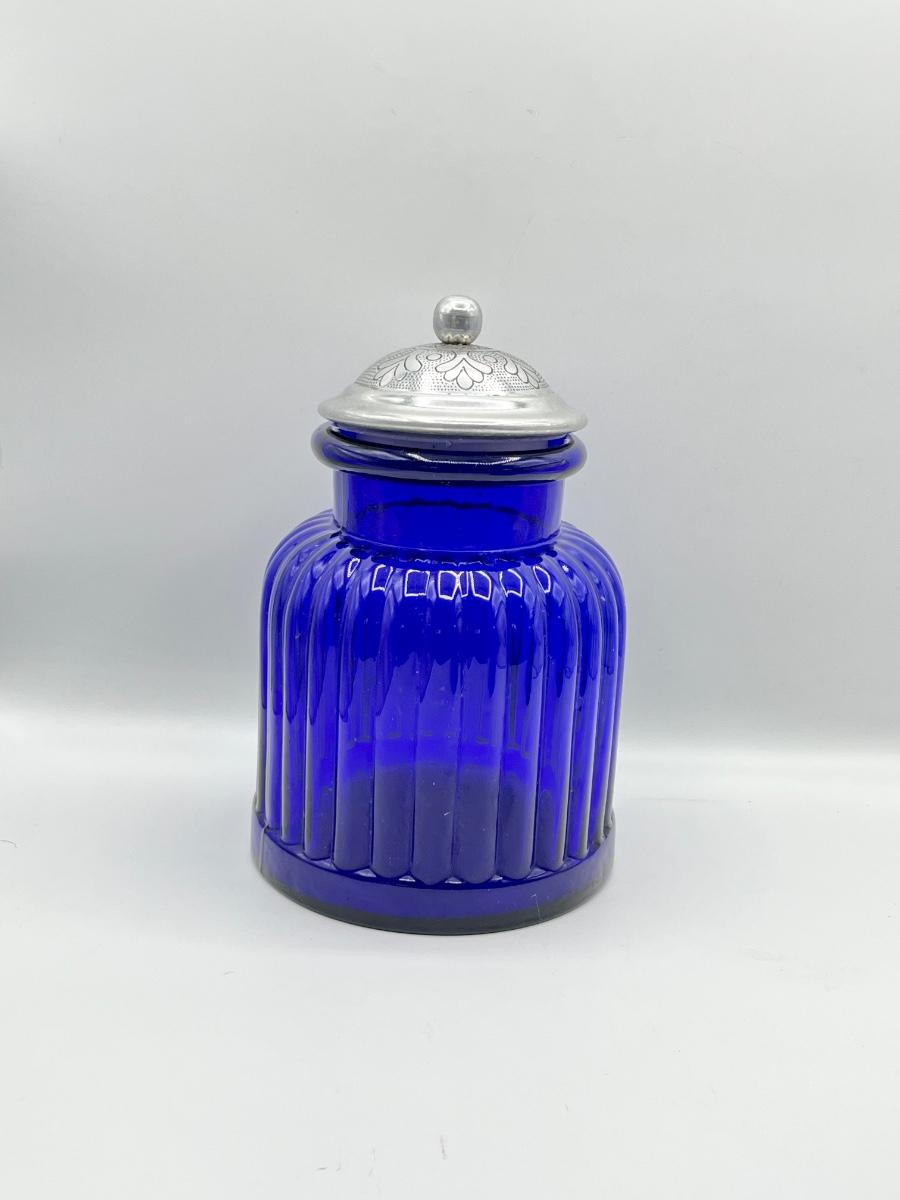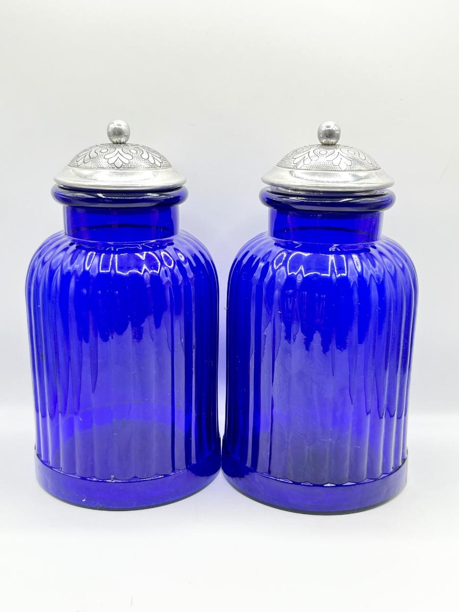 Vtg. Cobalt Blue Ribbed Lidded Canisters ~ Set Of Four (4)