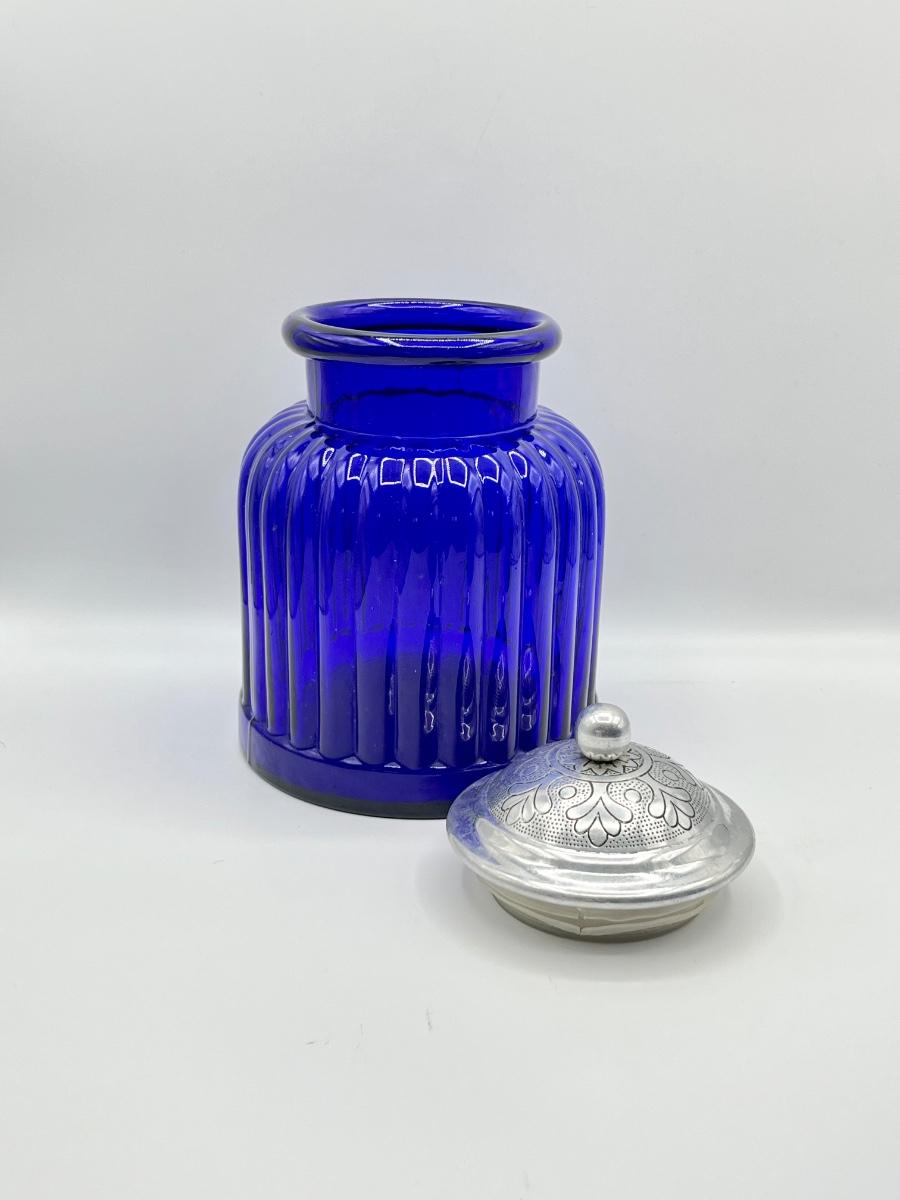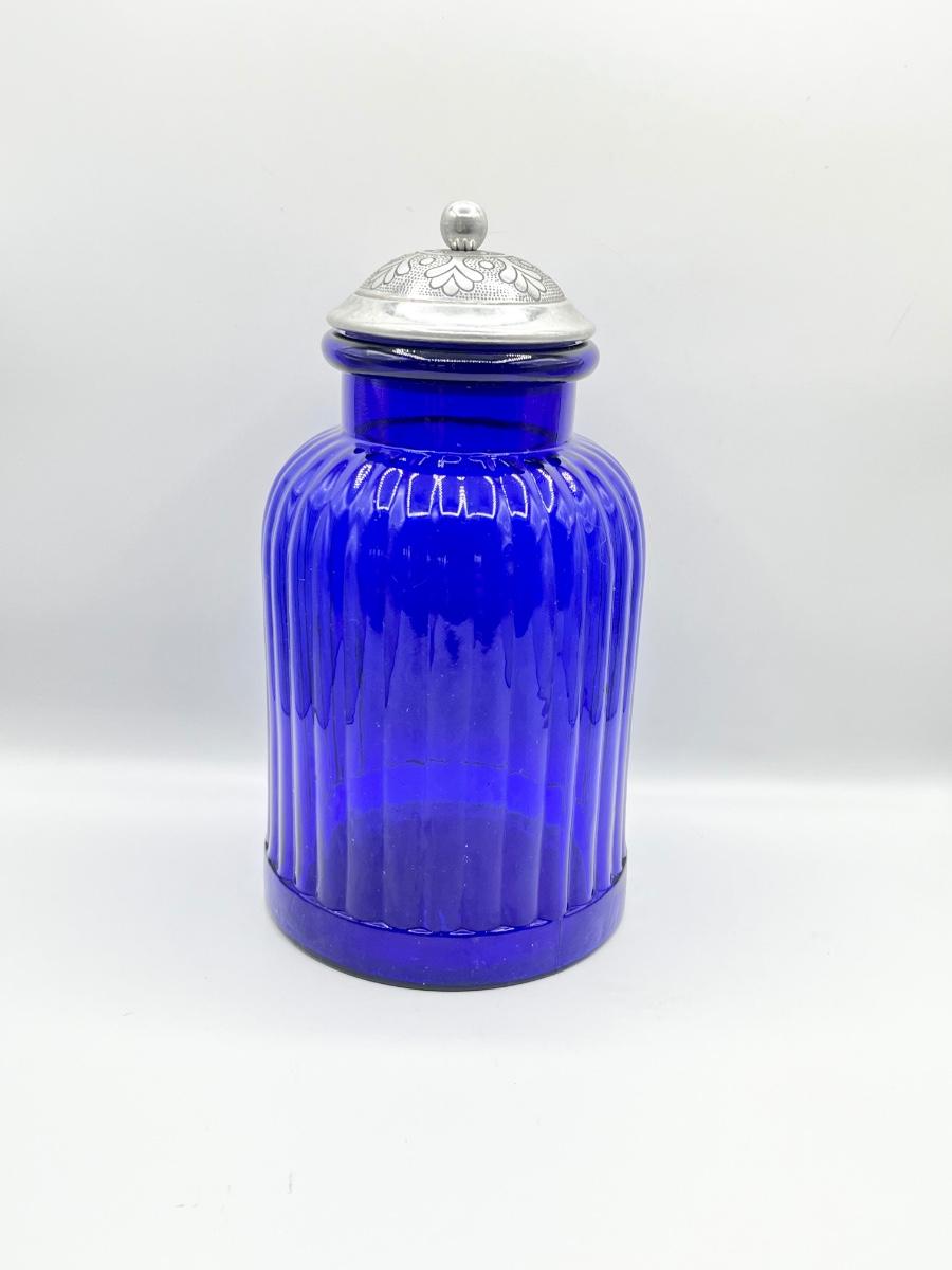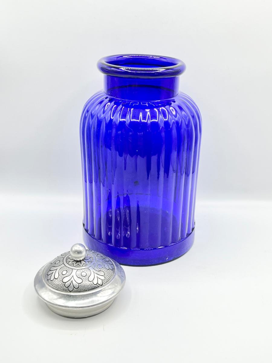 Vtg. Cobalt Blue Ribbed Lidded Canisters ~ Set Of Four (4)