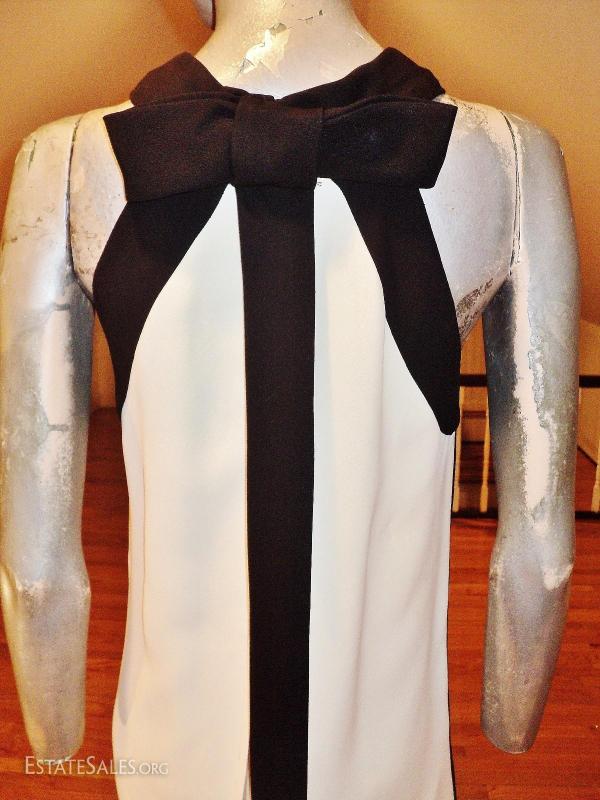 A real beauty from the 1960's Lord & Taylor crepe color block dress with kitten back winged bow fully lined and couture finish