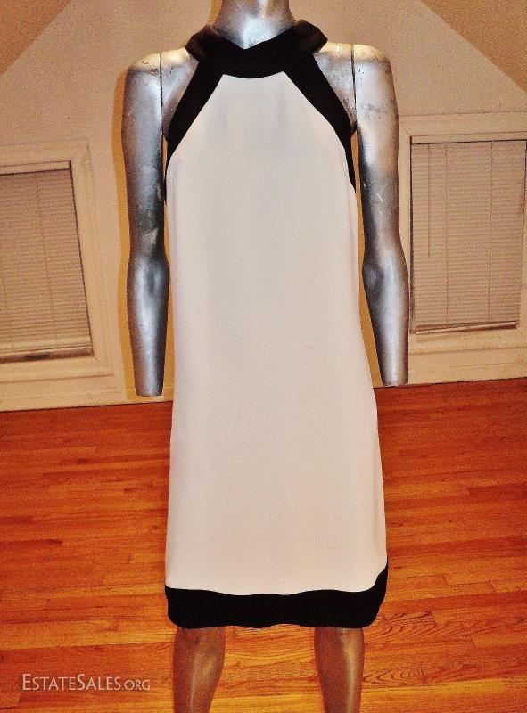 A real beauty from the 1960's Lord & Taylor crepe color block dress with kitten back winged bow fully lined and couture finish
