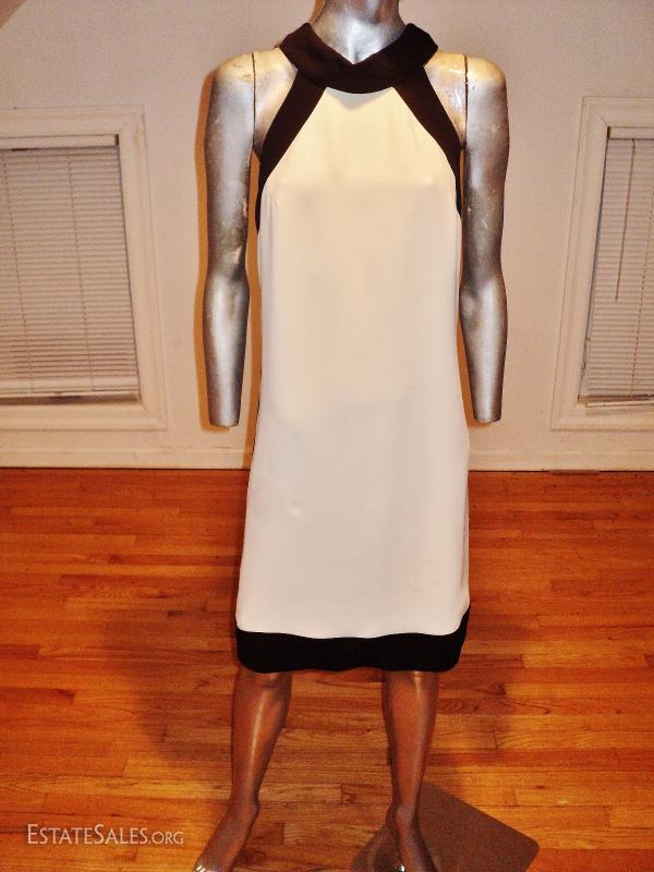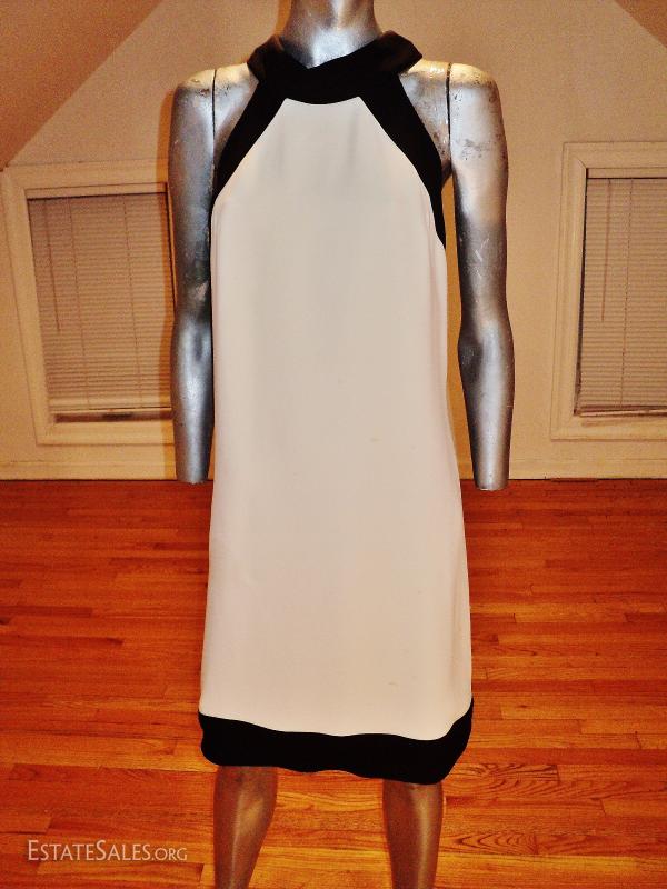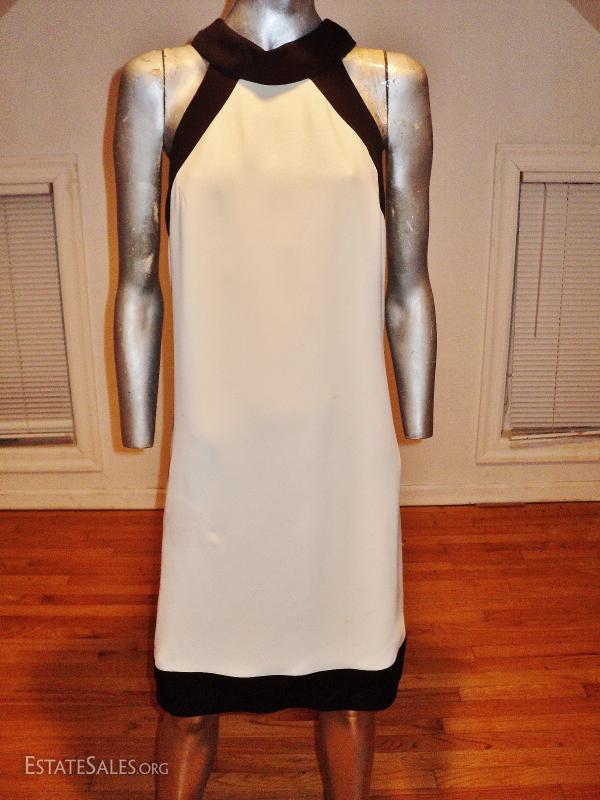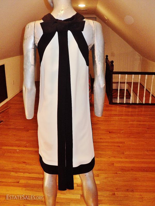 A real beauty from the 1960's Lord & Taylor crepe color block dress with kitten back winged bow fully lined and couture finish