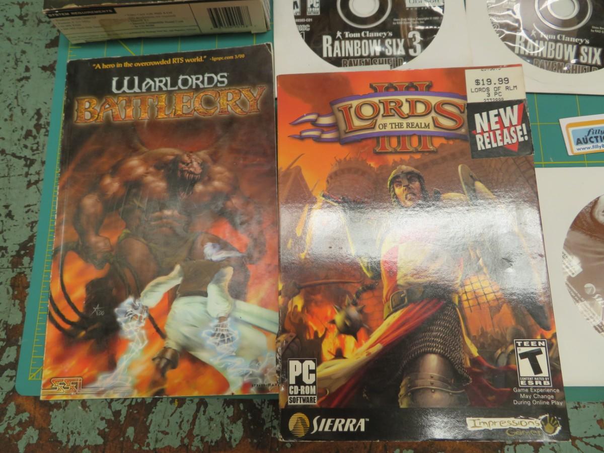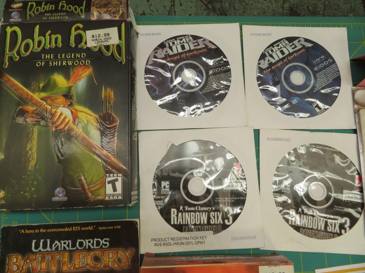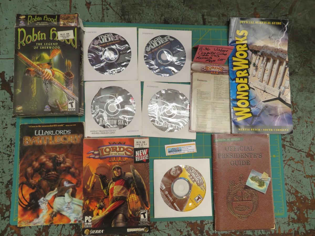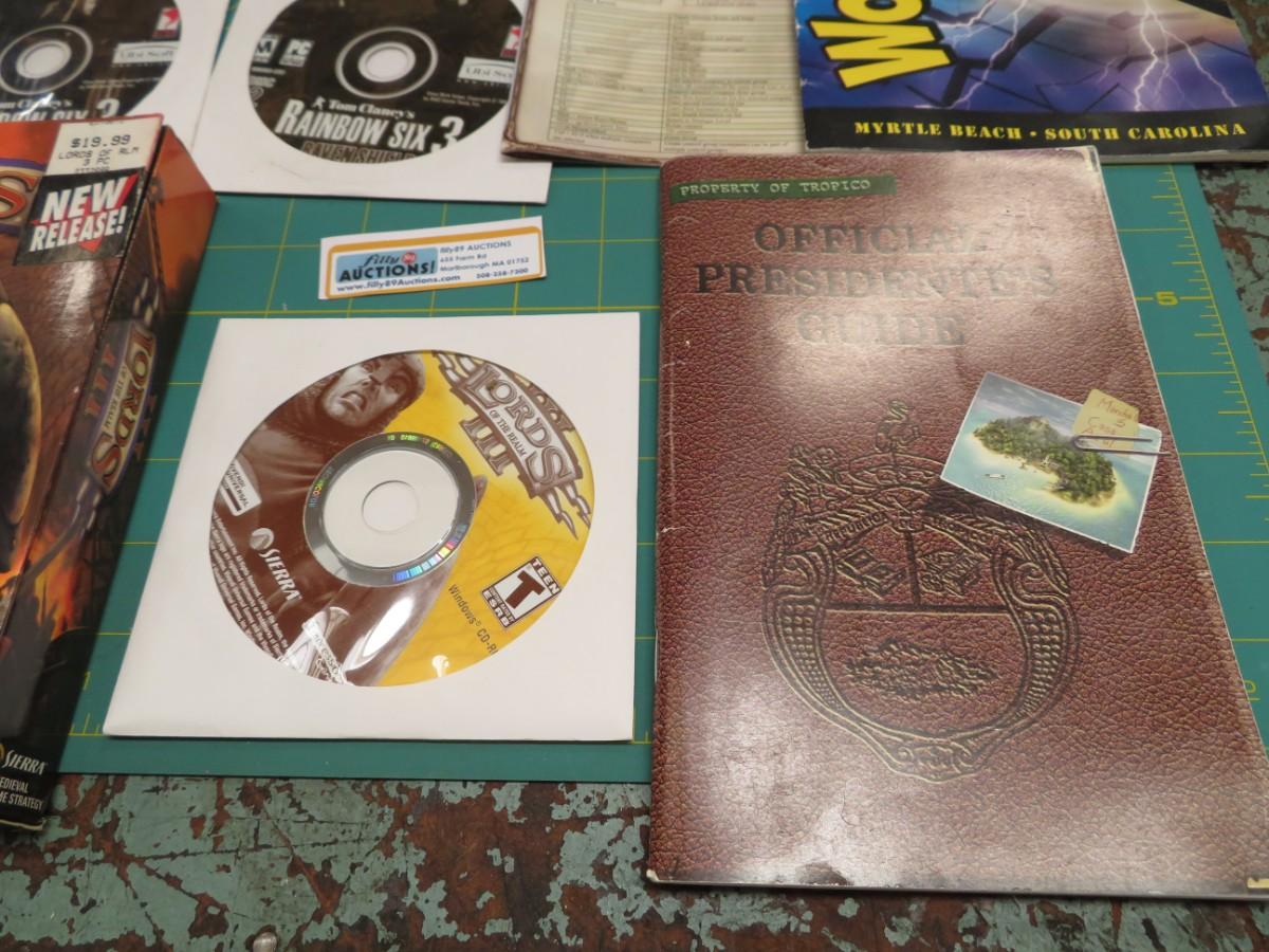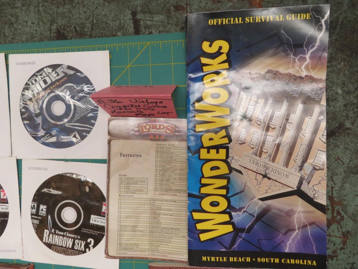 Lot of Misc Vintage Computer Video Games & Manuals with Lords of the Realm III with Cd, Tomb Raider, Tom Clancy Rainbow Six CD's, Wonder Works Guide, War Lords, Battlecry, Tropico Guide. Not tested.
