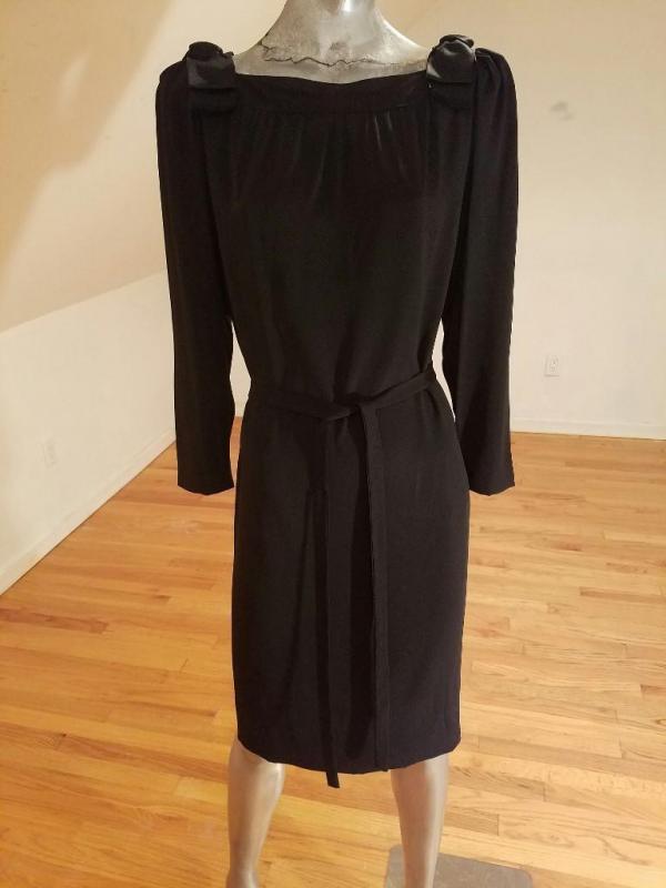 Vtg Couture Adele Simpson 1960's crepe sheath dress kitten bows/belt
