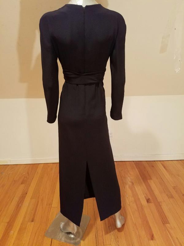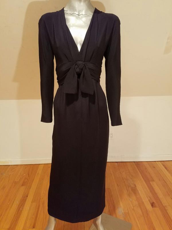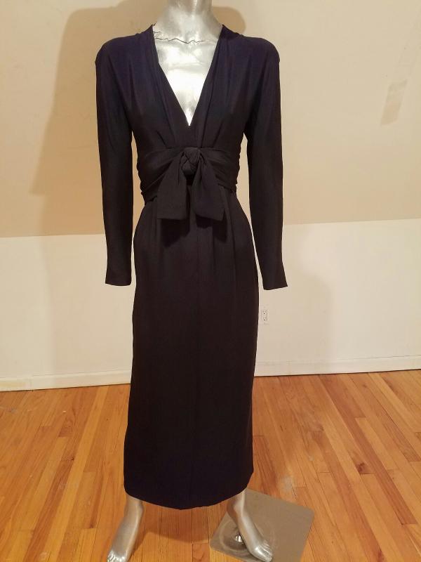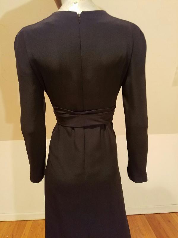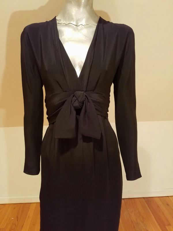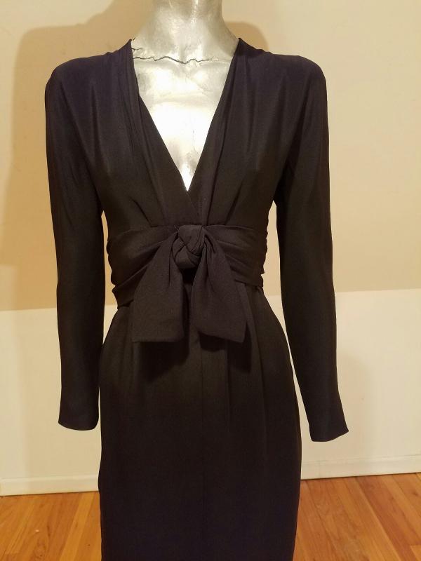 This one is the" Piece de Resistance" Couture Givenchy from the Early 1990's is is the Epiphany of French Classic beauty. It is a silk blend with magnificent shape and look. The sash belt attaches on the side with hooks. Perfect condition clean and no Issues.