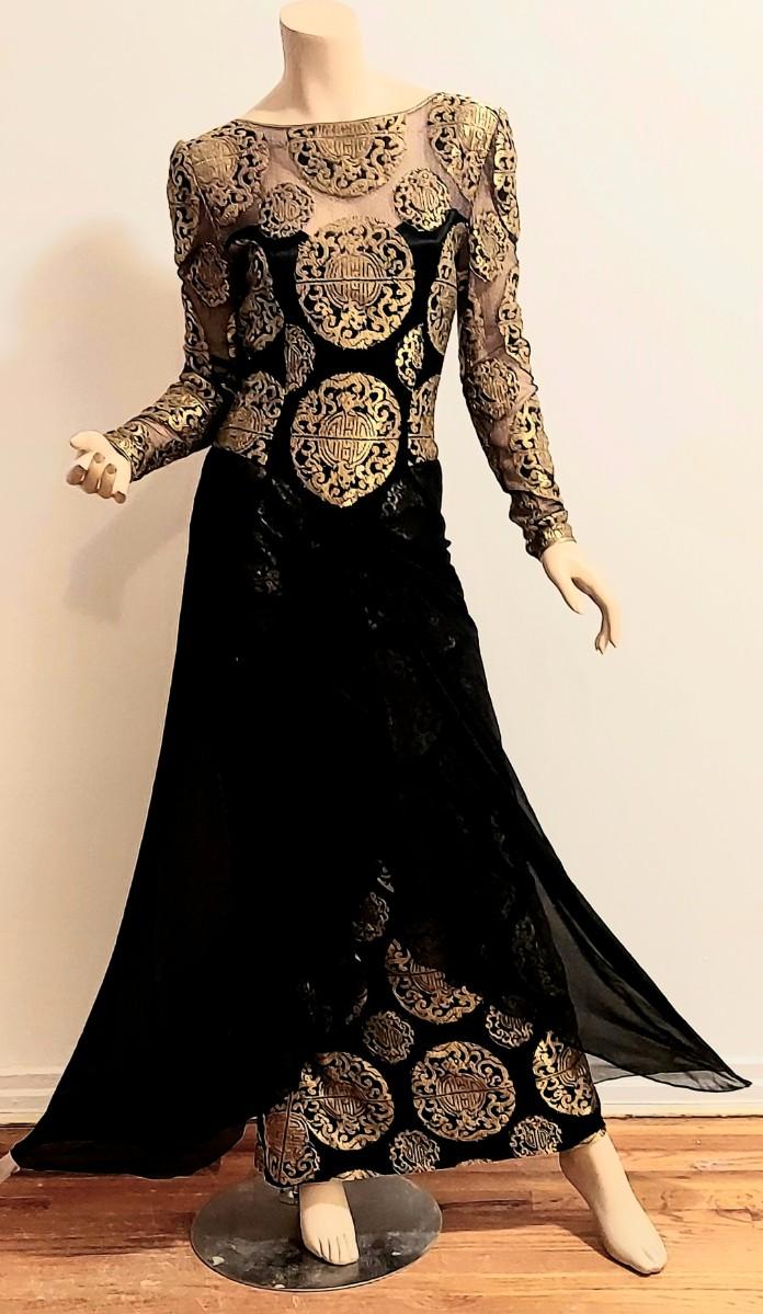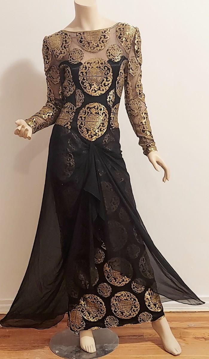 A Brocade Gold Metallic lacr in an Asian Design