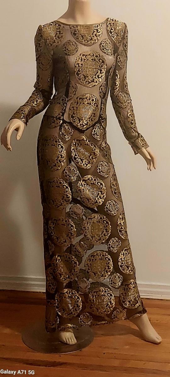 A Brocade Gold Metallic lacr in an Asian Design