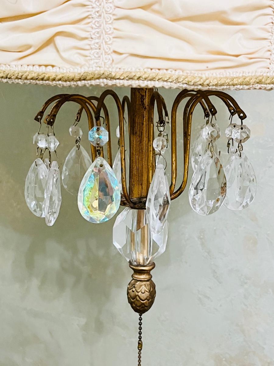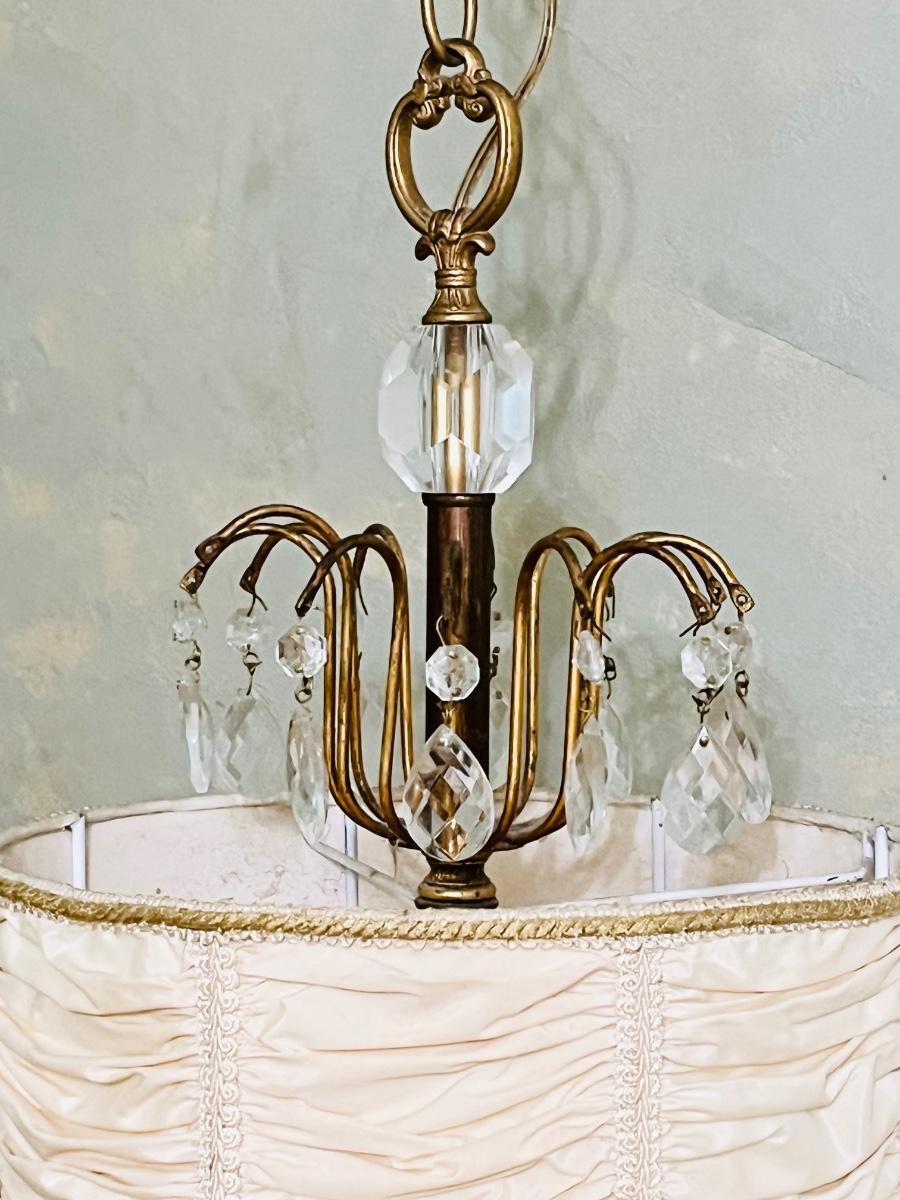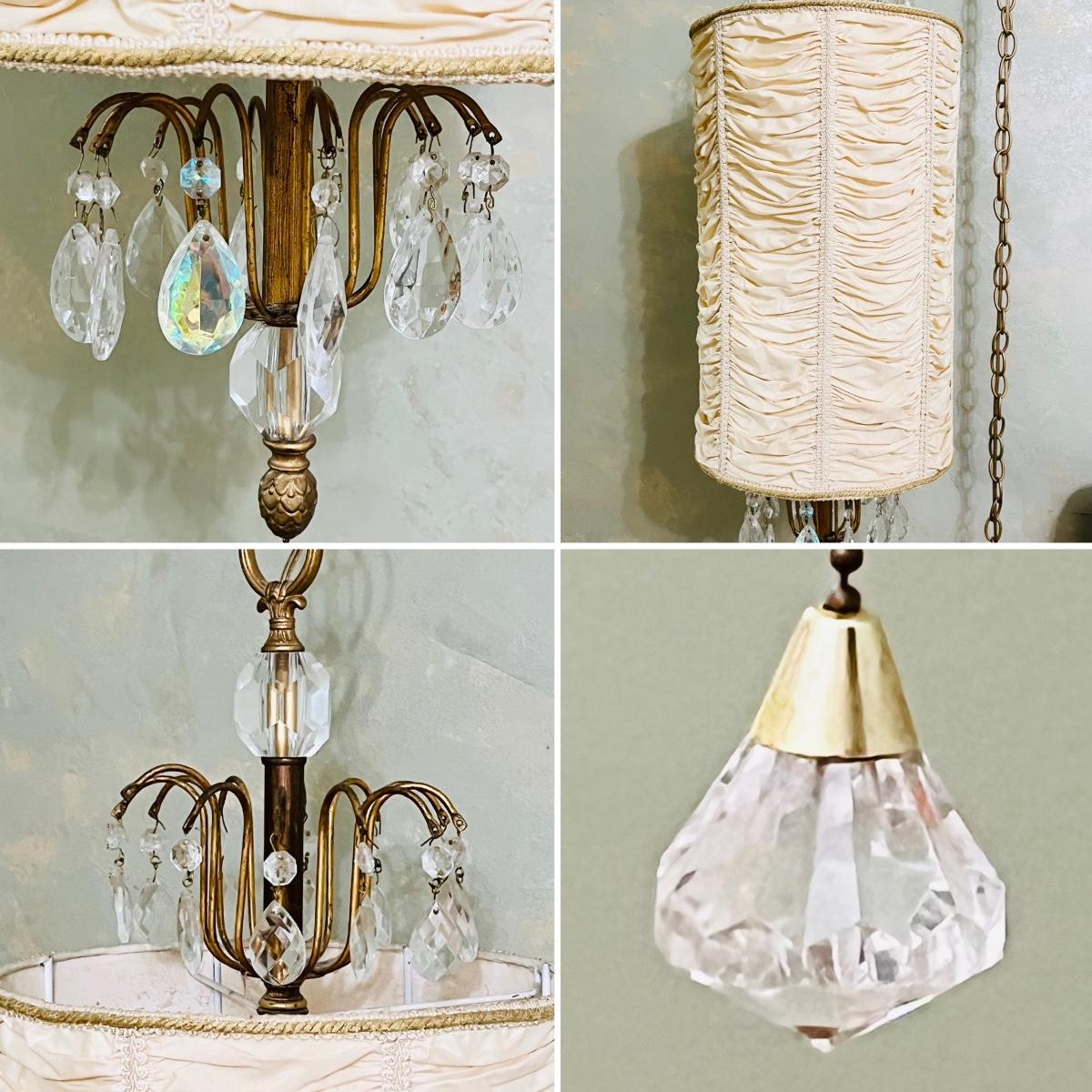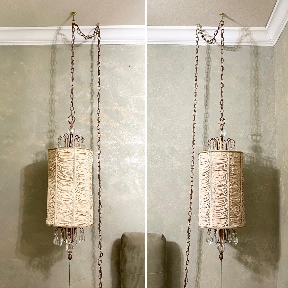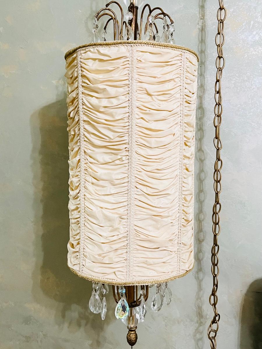 Vtg. Crystal & Fabric Pendant Lights ~ Pair (2)