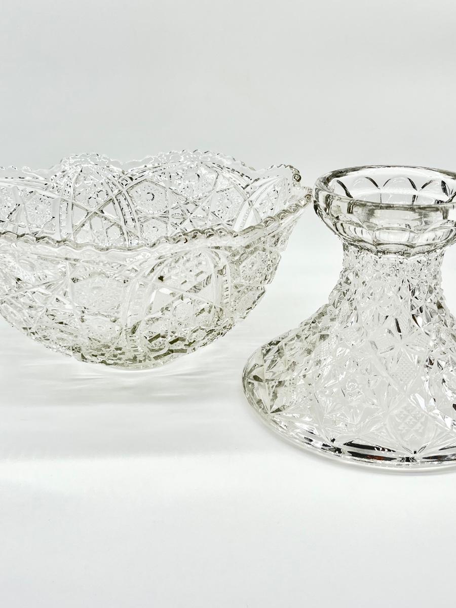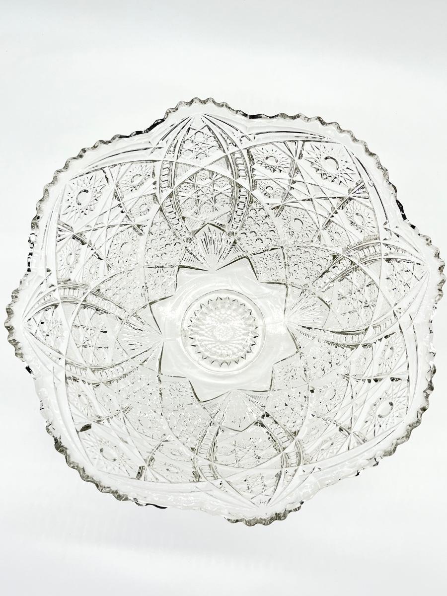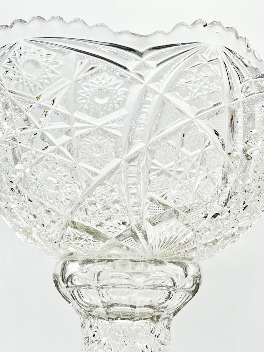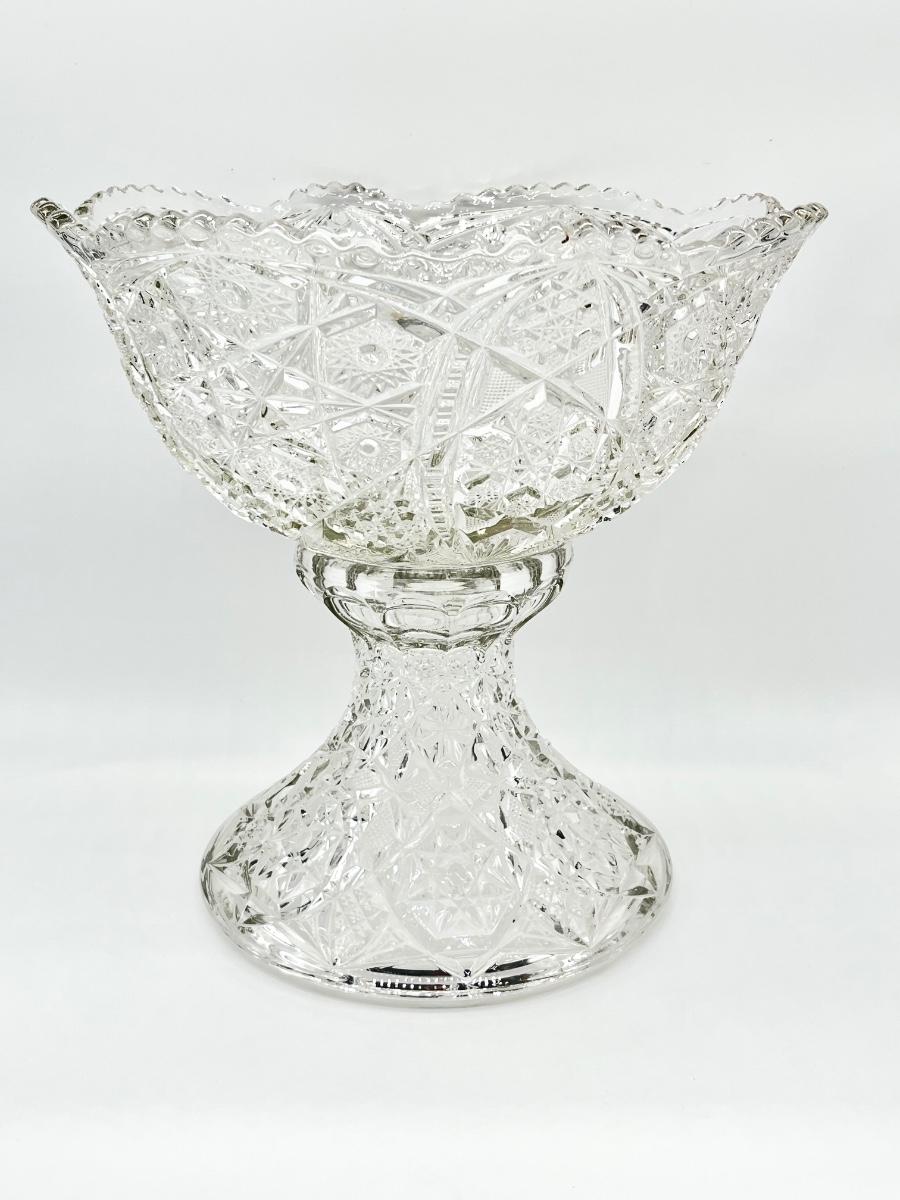 Vtg. Cut Crystal Punch Bowl With Stand