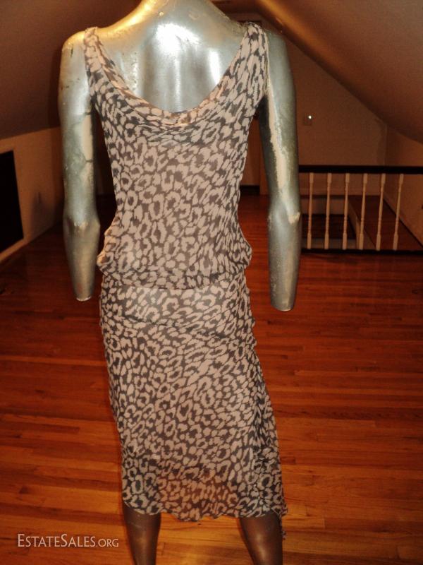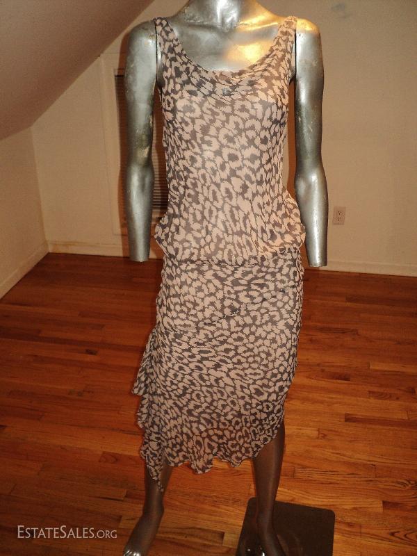 Diane von Furstenberg asymmetric ruffled high low dress. 100% silk in an animal print chiffon. Very light pale pink and light grey taupe. Elastic waist and a silk crepe underlayer. In like new condition. Hardly worn