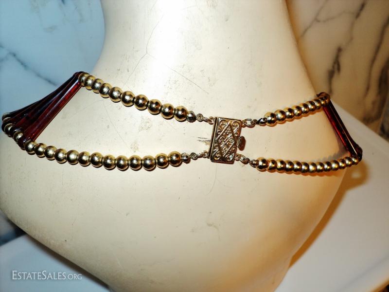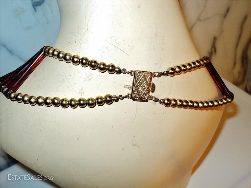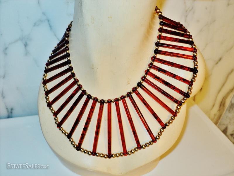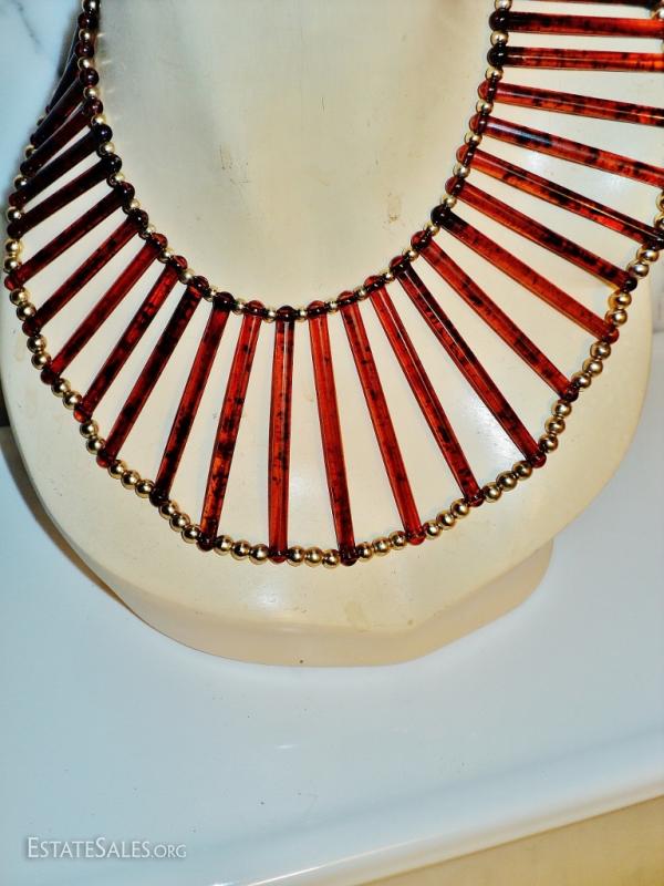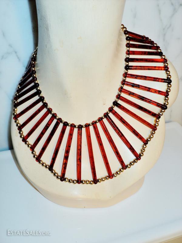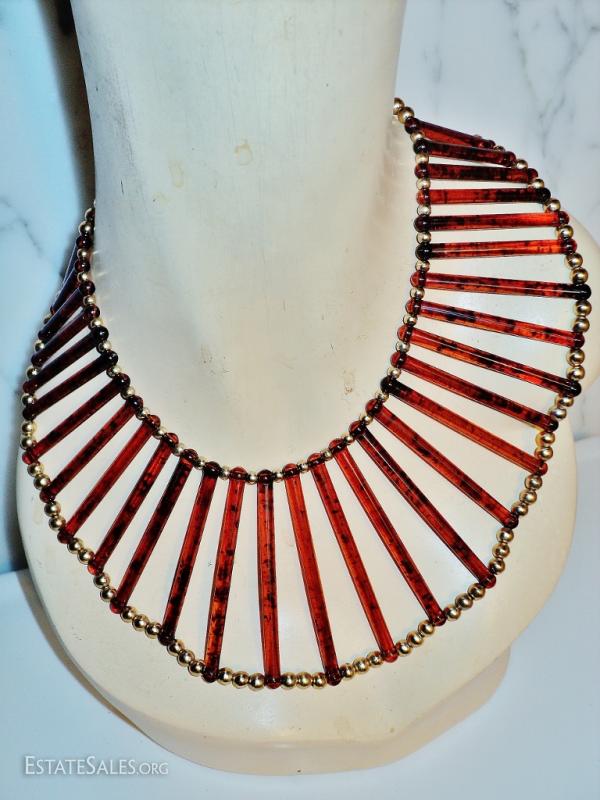 Vtg Egyptian revival Cleopatra look tortoise & golden beads Artisan handmade