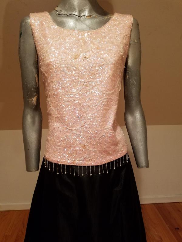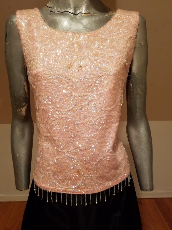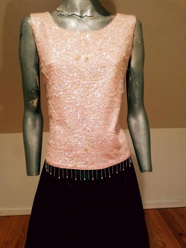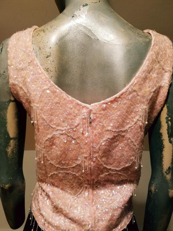 A Stunning ballet pink fully Embellished dangler Hong Kong metal zipper top. from the 1940's
