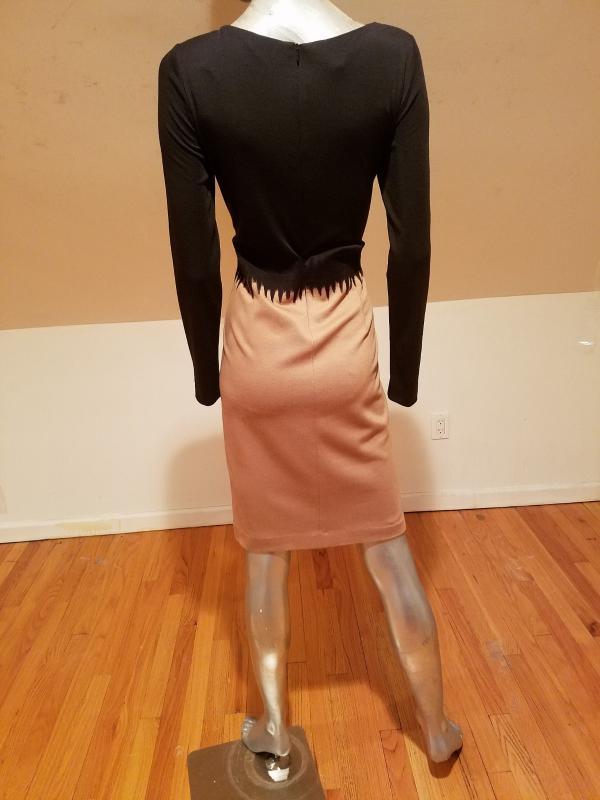 Vtg Escada Couture wool blend beige black  draped dress Euro-38